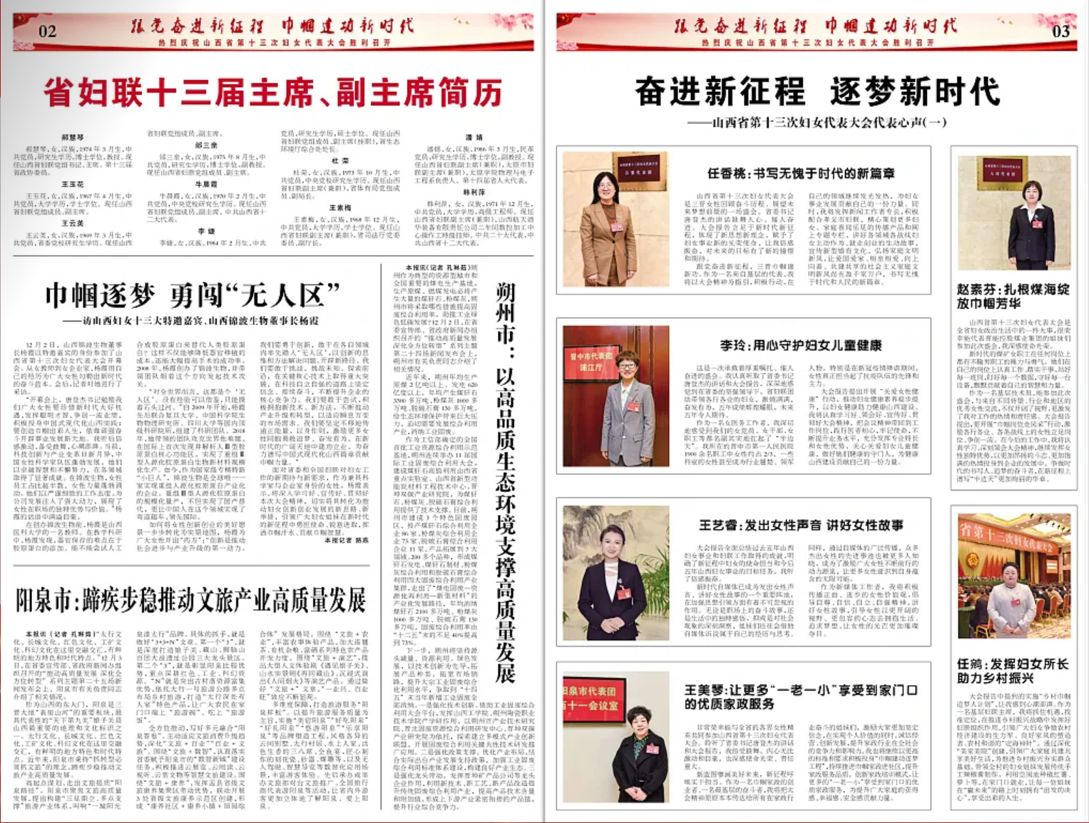 本报讯(记者闫书敏)12月3日,山西省第十三次妇女代表大会在太原胜利闭幕。省委副书记张春林出席闭幕会并讲话。他向新当选的省妇联领导班子表示祝贺,希望全省广大妇女和妇女工作者牢记领袖嘱托,矢志感恩奋进,争做伟大事业的建设者、文明风尚的倡导者、敢于追梦的奋斗者,为奋力谱写中国式现代化山西篇章贡献巾帼力量。副省长赵红严出席会议。
