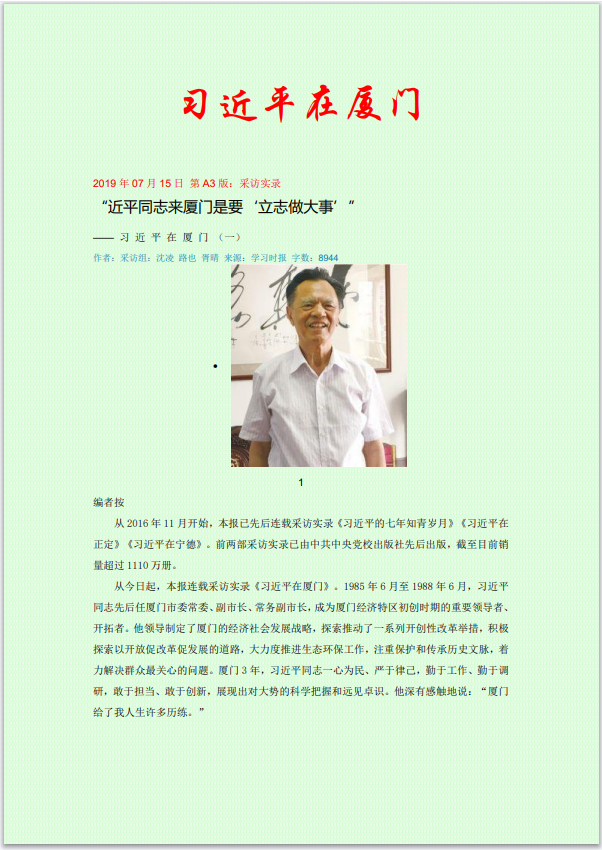 当年,习近平同志领导编制的《1985年—2000年厦门经济社会发展战略》,以前瞻性的战略眼光指明厦门永续发展之路,成为中国地方政府最早编制的一个纵跨十五年的经济社会发展战略规划。
