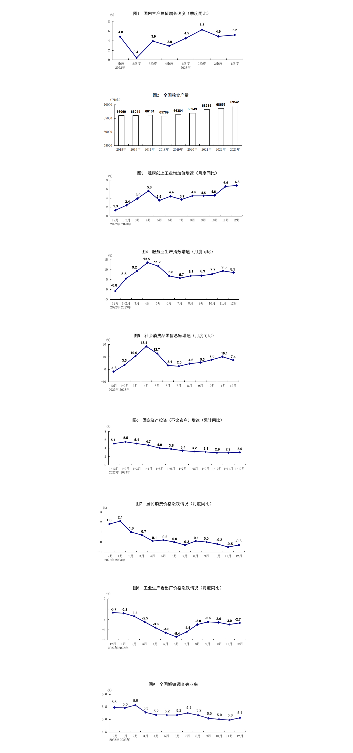 2022年及2023年各季度GDP环比增速分别为0.6%、-2.1%、4.0%、0.6%、2.1%、0.6%、1.5%和1.0%。