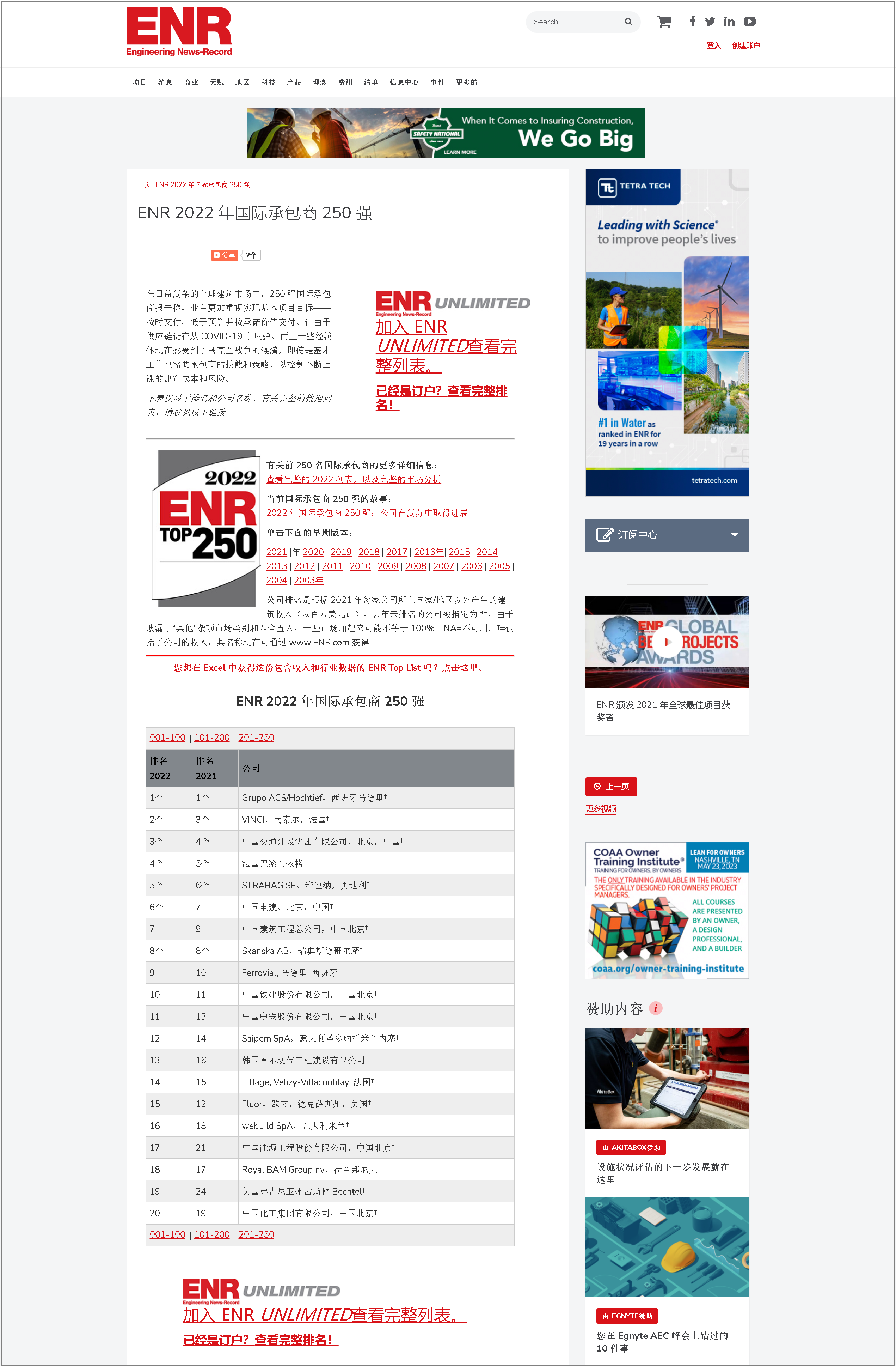 每年 8 月发布的国际承包商 250 强榜单根据总建筑承包出口收入对全球 250 家最大的公共和私营建筑承包商进行排名,这些出口收入来自每个公司各自本国以外的项目。
