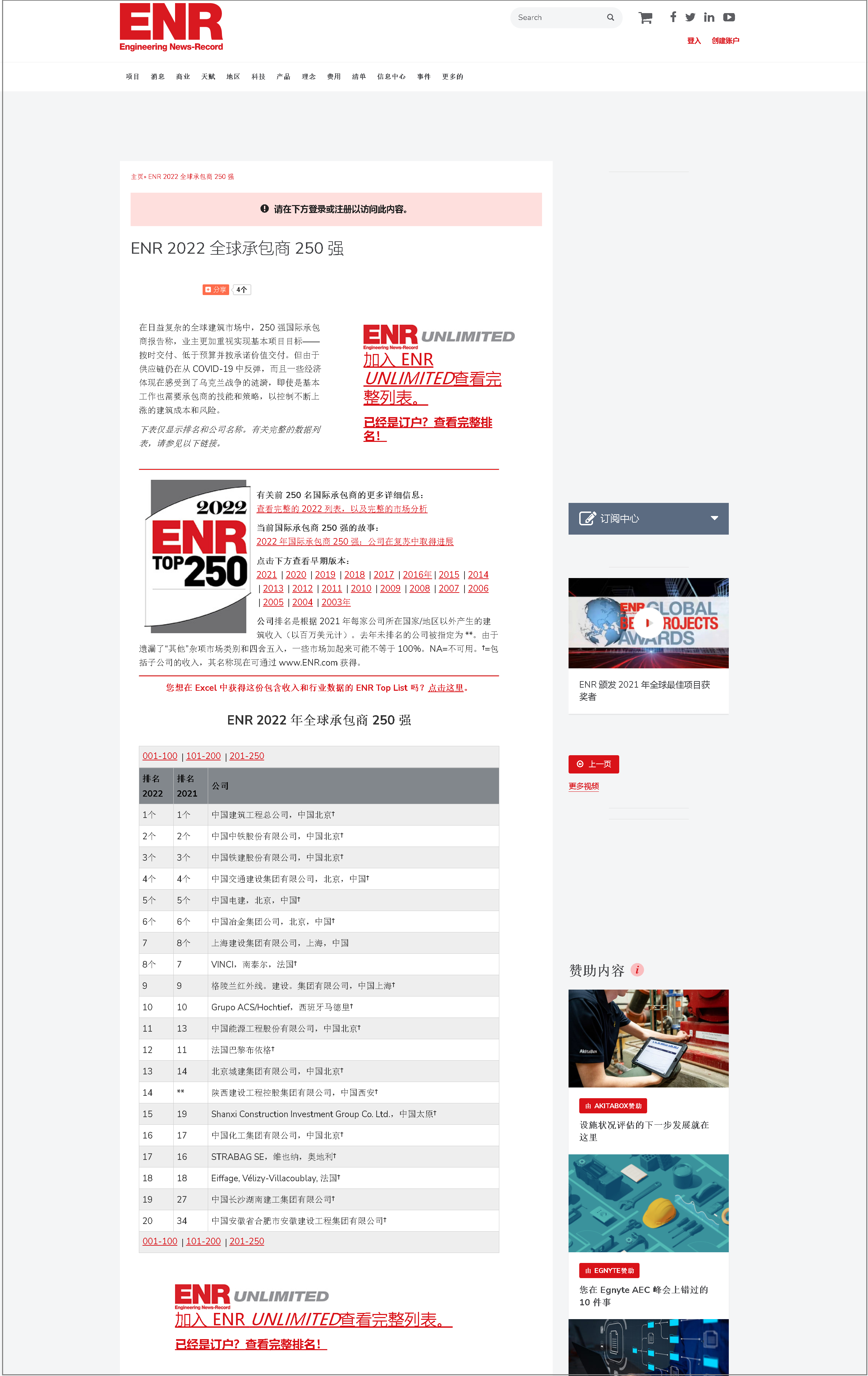 《工程新闻纪录》,简称ENR,是一份美国的周刊,该刊物主要关注建筑工程领域,致力提供全球性的工程新闻、评论意见、分析数据等,ENR创刊于1874年,《工程新闻纪录》(英文:The Engineering News-Record),由麦格劳·希尔集团控股。ENR每年固定出版美国及全球工程领域相关公司的规模排名,其中尤以世界承包商225强(ENR Global 225)、国际承包商225强(ENR International 225)两项排名为全球业内人士熟知,拥有较高权威性和知名度。
