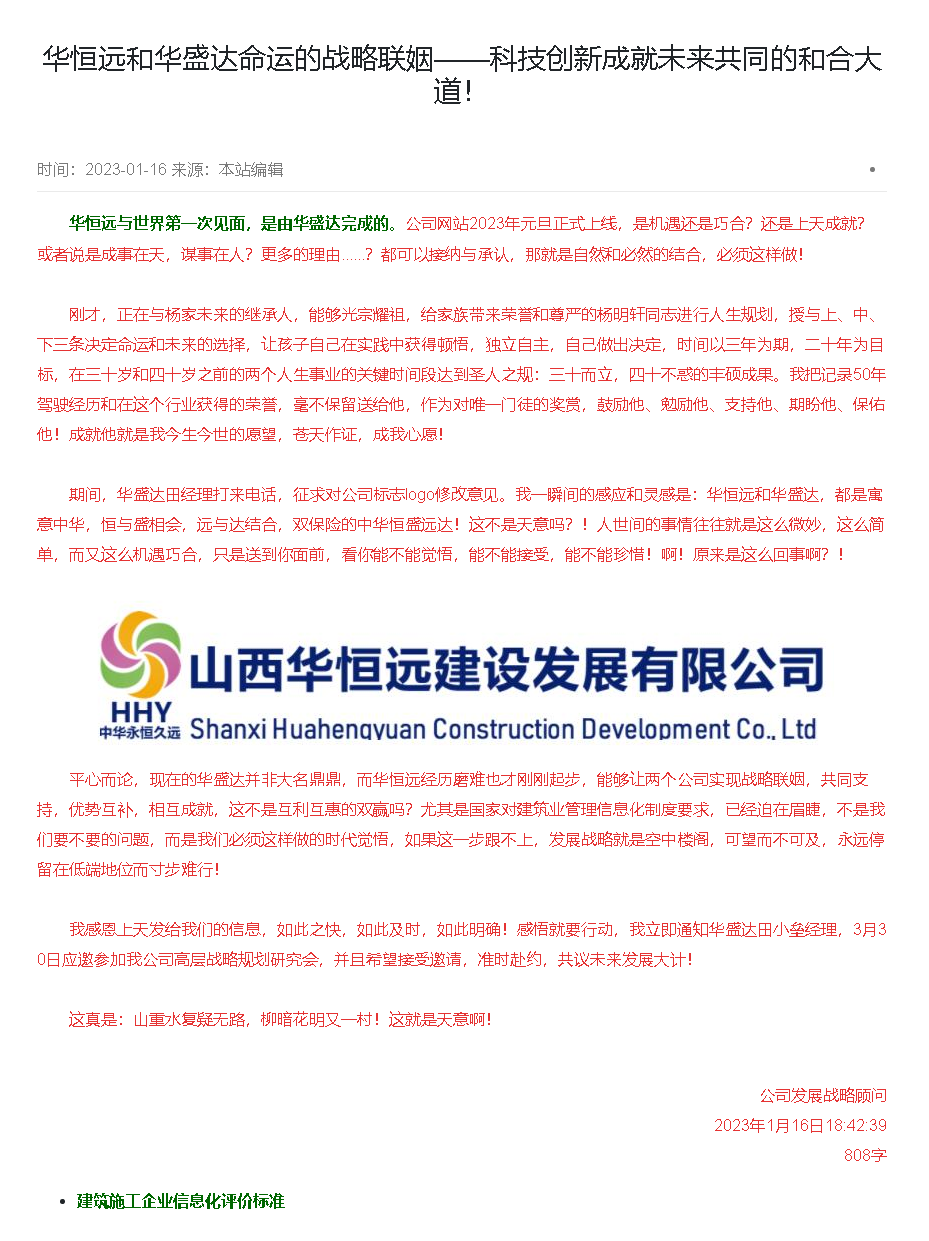 平心而论,现在的华盛达并非大名鼎鼎,而k1体育经历磨难也才刚刚起步,能够让两个公司实现战略联姻,共同支持,优势互补,相互成就,这不是互利互惠的双赢吗?尤其是国家对建筑业管理信息化制度要求,已经迫在眉睫,不是我们要不要的问题,而是我们必须这样做的时代觉悟,如果这一步跟不上,发展战略就是空中楼阁,可望而不可及,永远停留在低端地位而寸步难行!808字