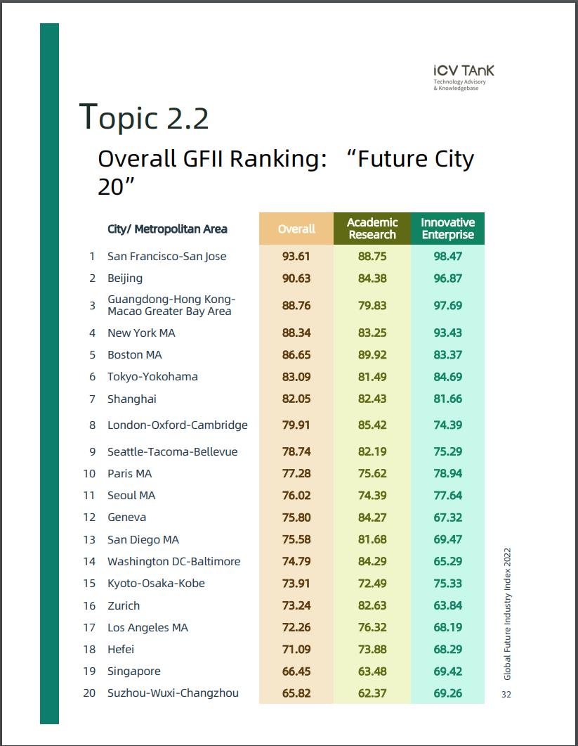 全球著名的科技咨询机构iCV TAnK日前发布《2022全球未来产业发展指数》,对全球未来产业进行了全面、系统排名。其中,北京在“未来之城”综合排名中居全球第二,在科研设施指标上排名第一。