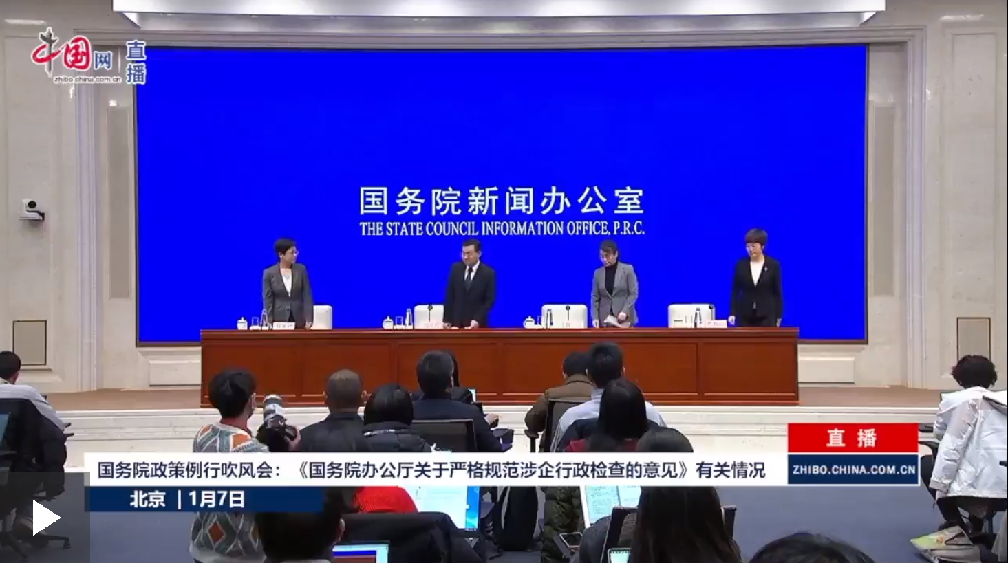 国新办1月7日举行的新闻发布会上,司法部有关负责人介绍了《关于严格规范涉企行政检查的意见》有关情况。