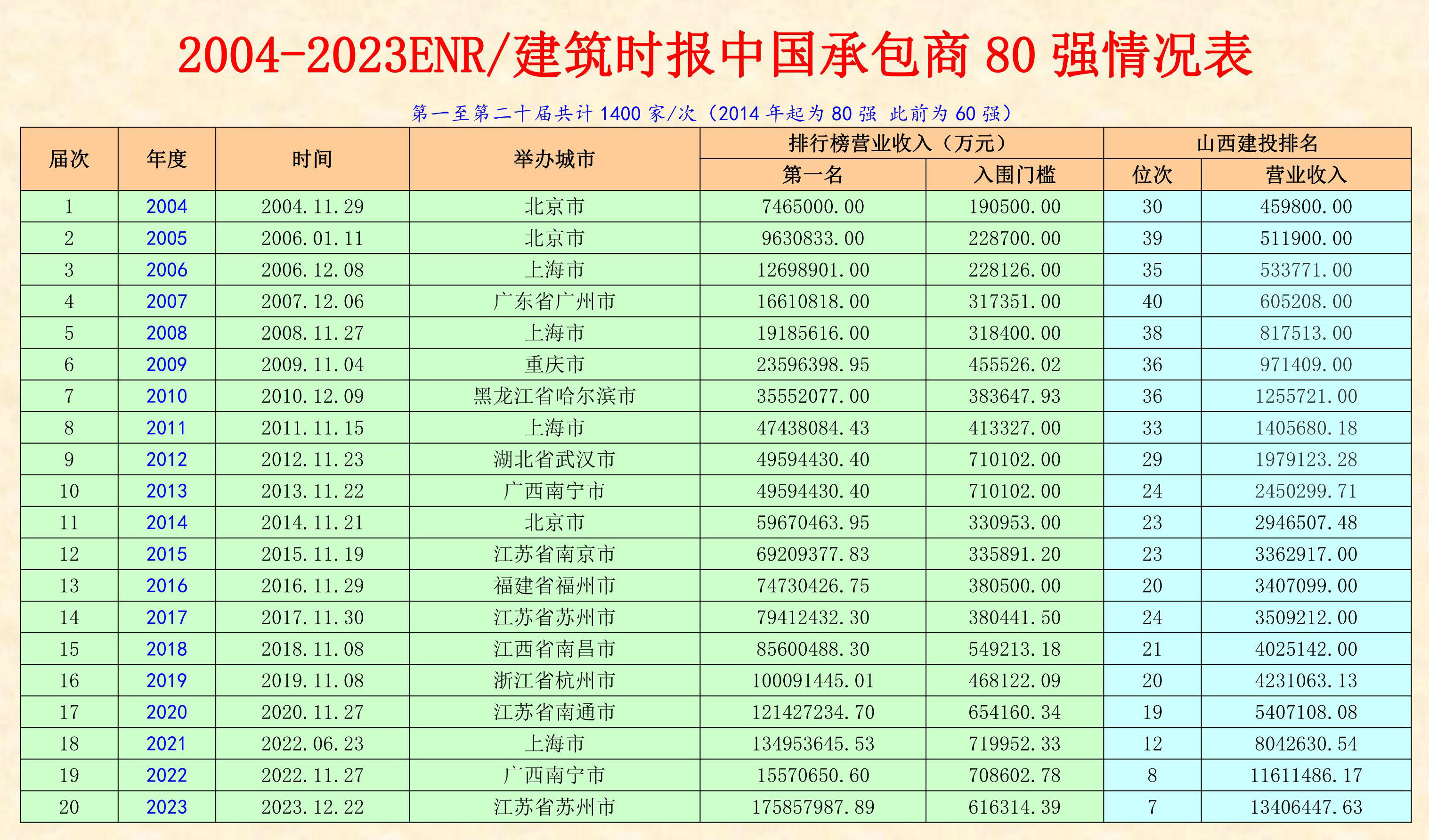 近日,《建筑时报》和美国《工程新闻记录》(ENR)共同发布2023ENR/建筑时报“中国承包商80强和工程设计企业60强”排名榜单。