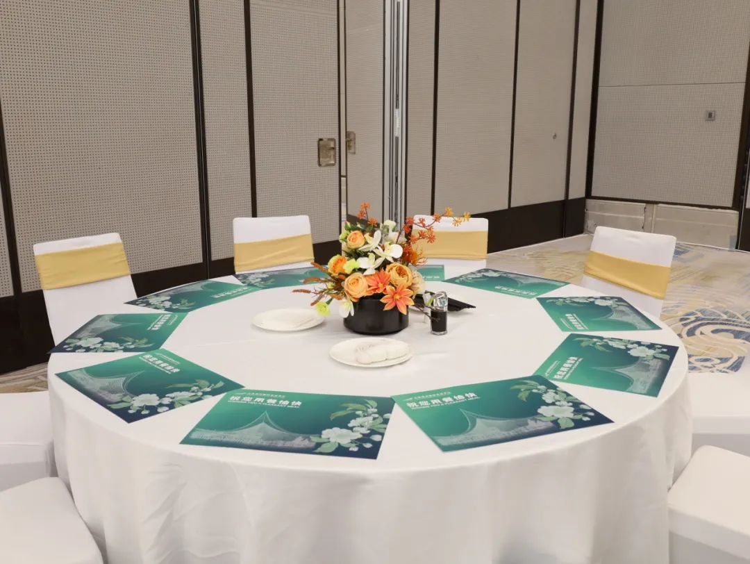 会场内定制化布置,会议用水、纸、笔、桌签等会务物资一应俱全;全厅设施完善,智能化控温控湿系统保证会场环境舒适。专业团队全程跟踪服务,从桌型排列、动线规划、彩排演练到内场执行,每个环节精益求精,确保会议顺利进行,为与会人员打造了流畅的高品质会议环境。