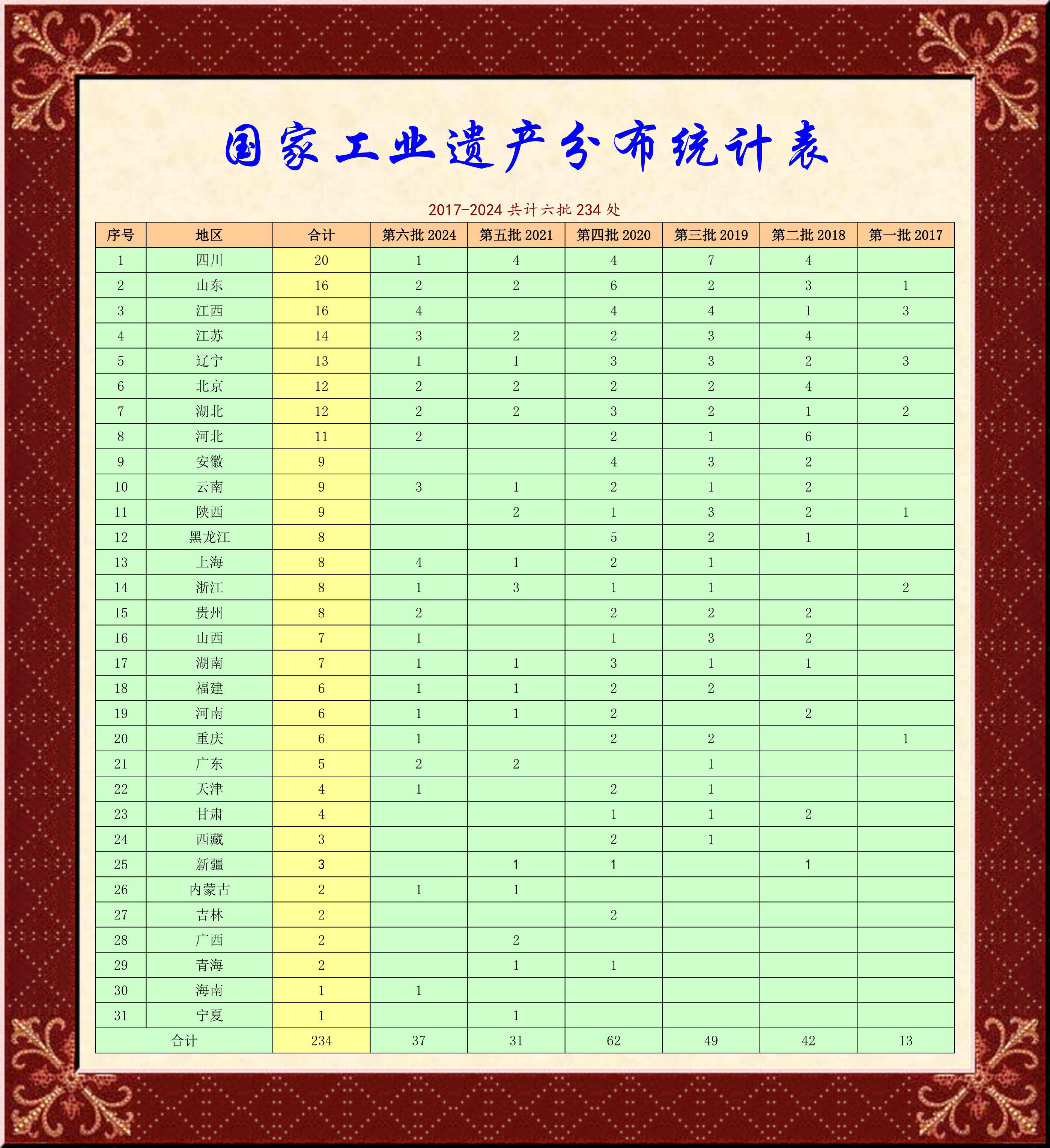 1.第六批国家工业遗产名单 2.通过复核的第一、二批国家工业遗产名单 3.需要整改项目名单