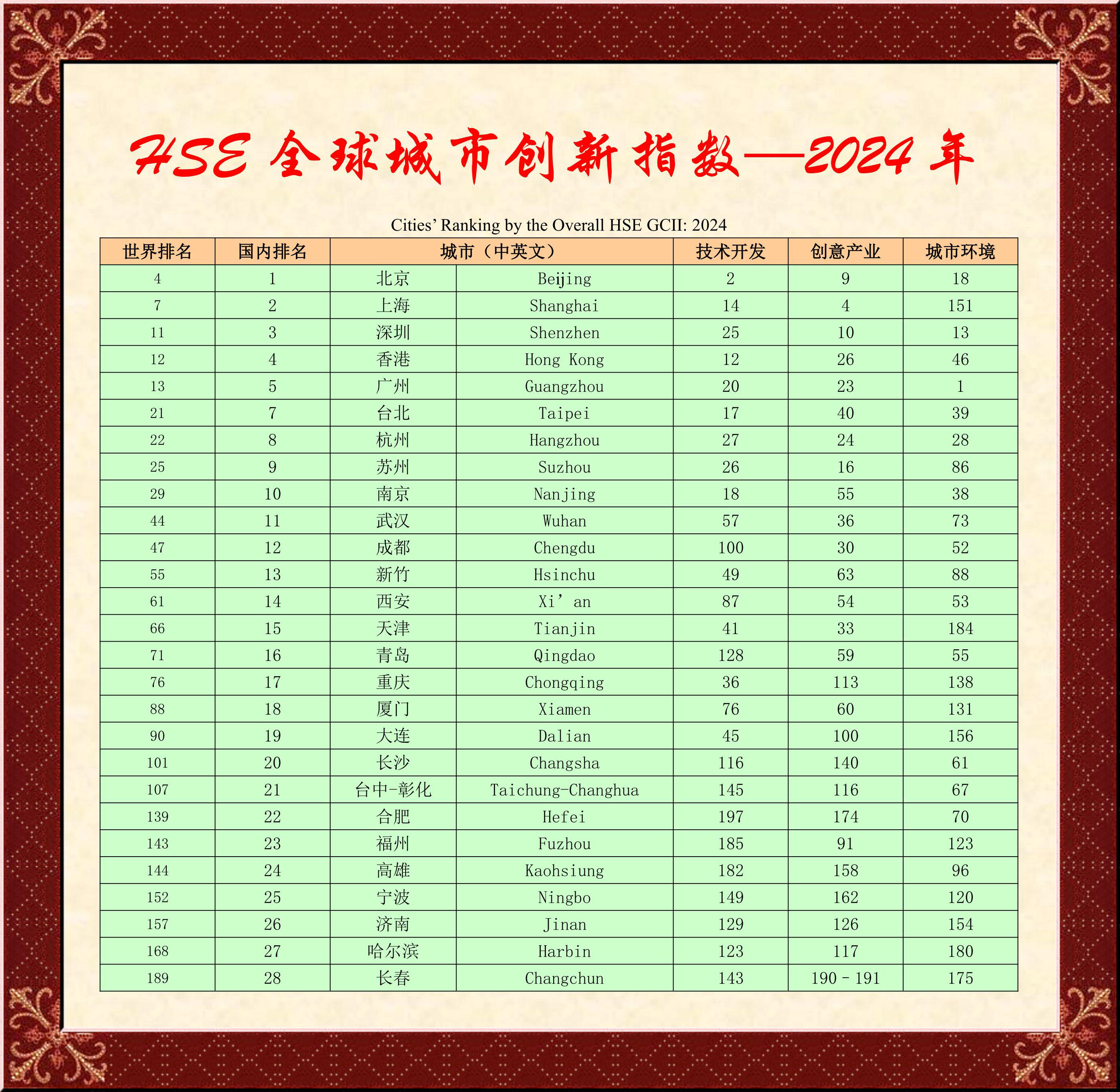 排名 城市(中英文) 技术开发 创意产业 城市环境