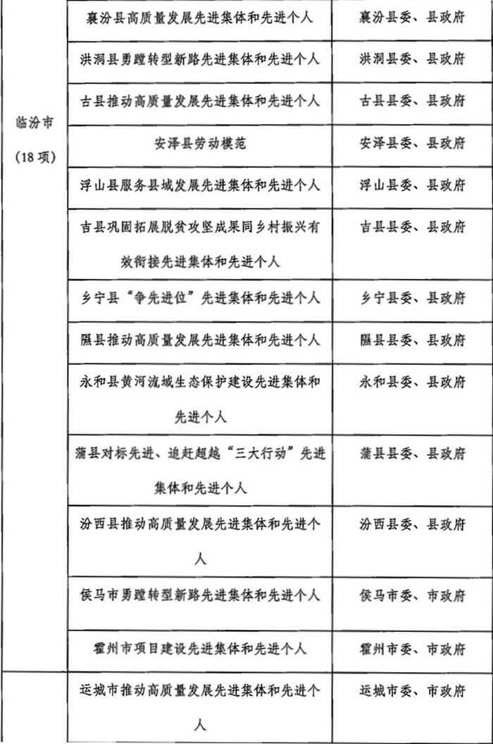 山西省2023年计划开展的评比达标表彰项目目录