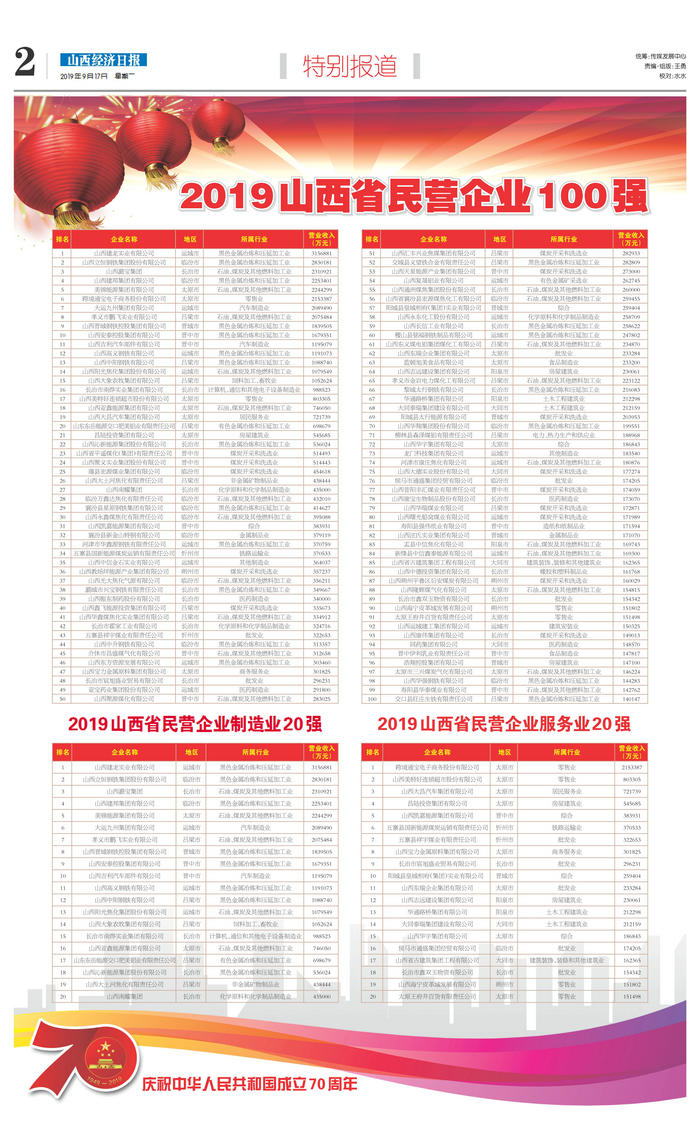 1 山西鹏飞集团有限公司 吕梁市 石油、煤炭及其他燃料加工业 10296933