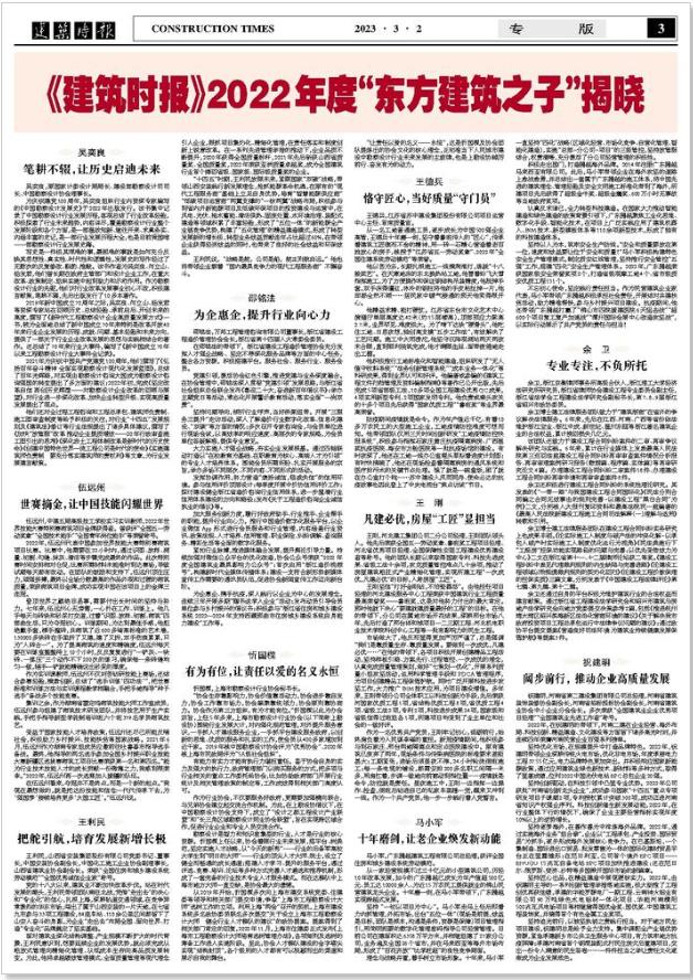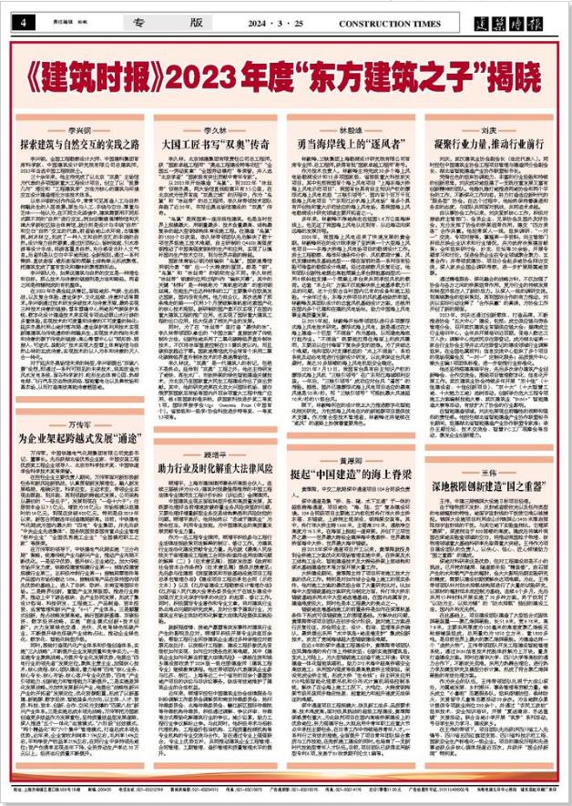 【行业动态】《建筑时报》2023年度“东方建筑之子”揭晓