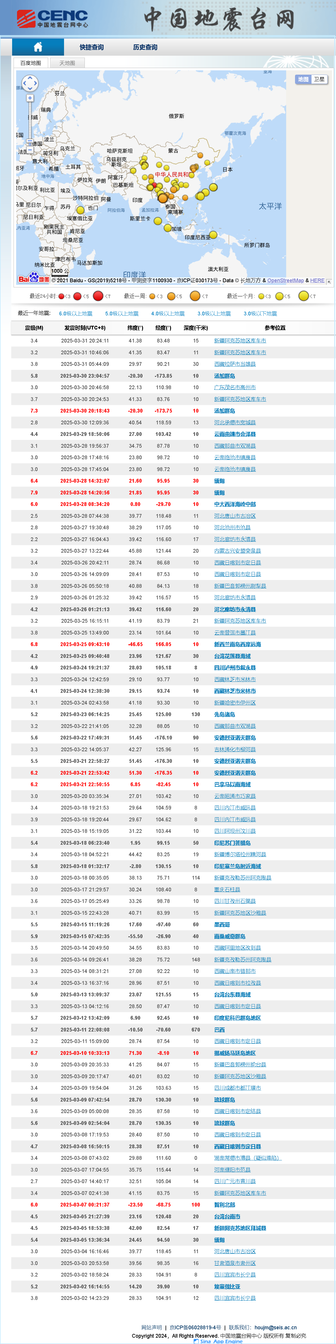 而值得注意的是,3月30日不光汤加发生了地震,我国的新疆、广东、西藏都有地区发生地震,只是震级相对较小,最大只有3.8级。