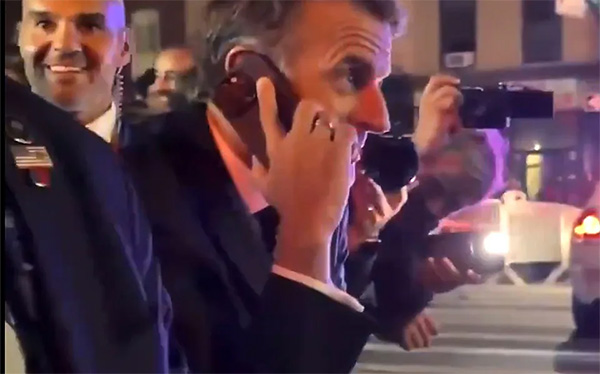 马克龙当街给特朗普打电话 视频截图