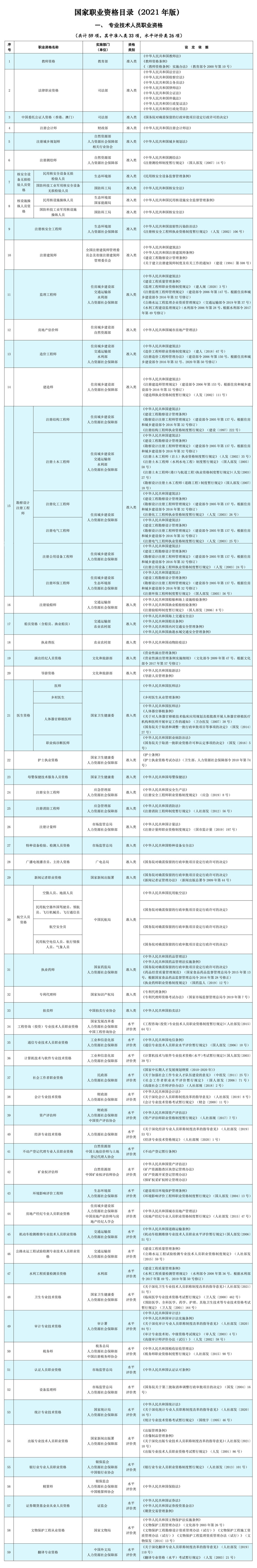 根据国务院推进简政放权、放管结合、优化服务改革要求,人力资源社会保障部会同国务院有关部门对《国家职业资格目录》进行优化调整,形成了《国家职业资格目录(2021年版)》,经国务院同意,现予以公布。