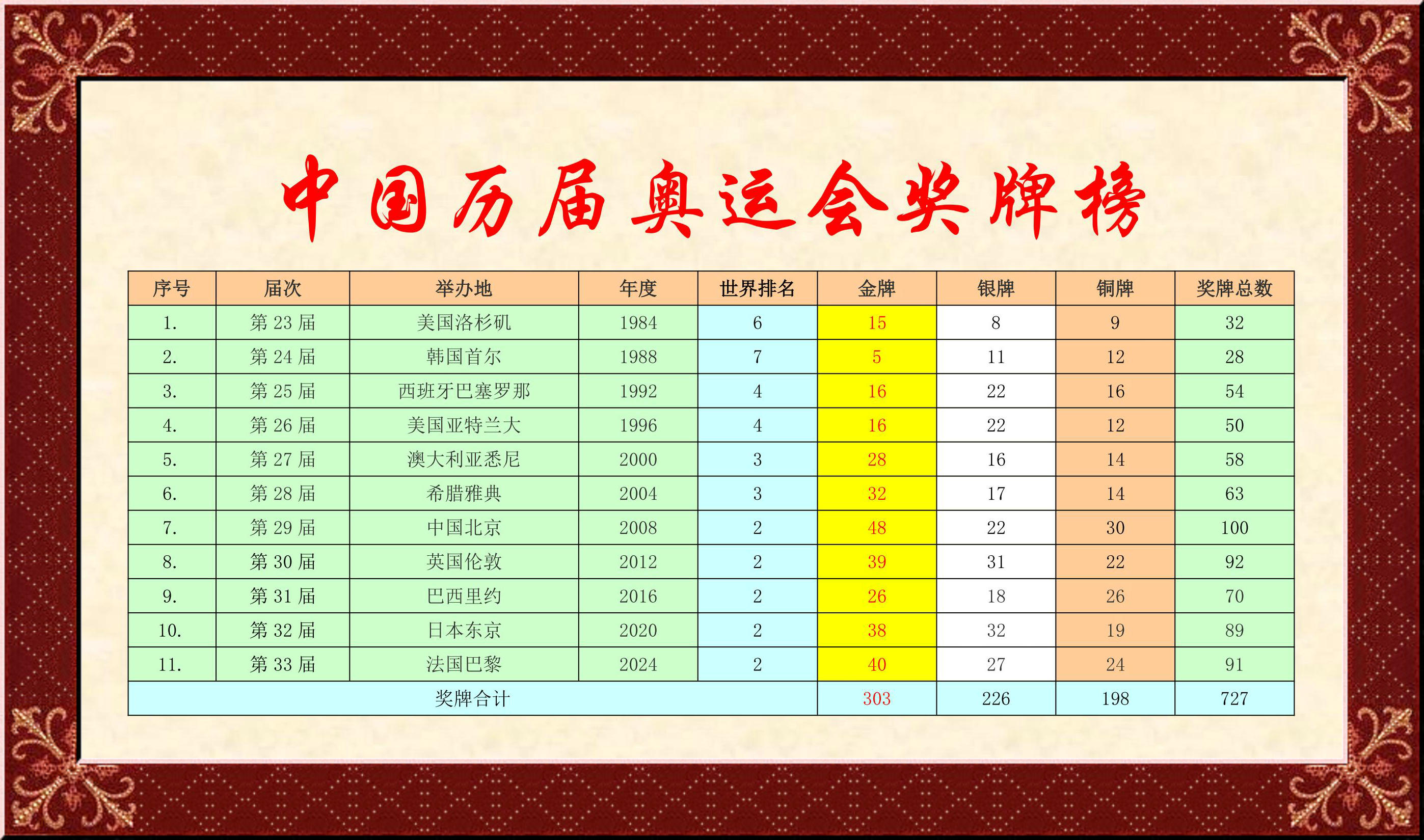 【学习园地】感悟今日巴黎奥运会奖牌榜——中国体育代表团已经收获成功