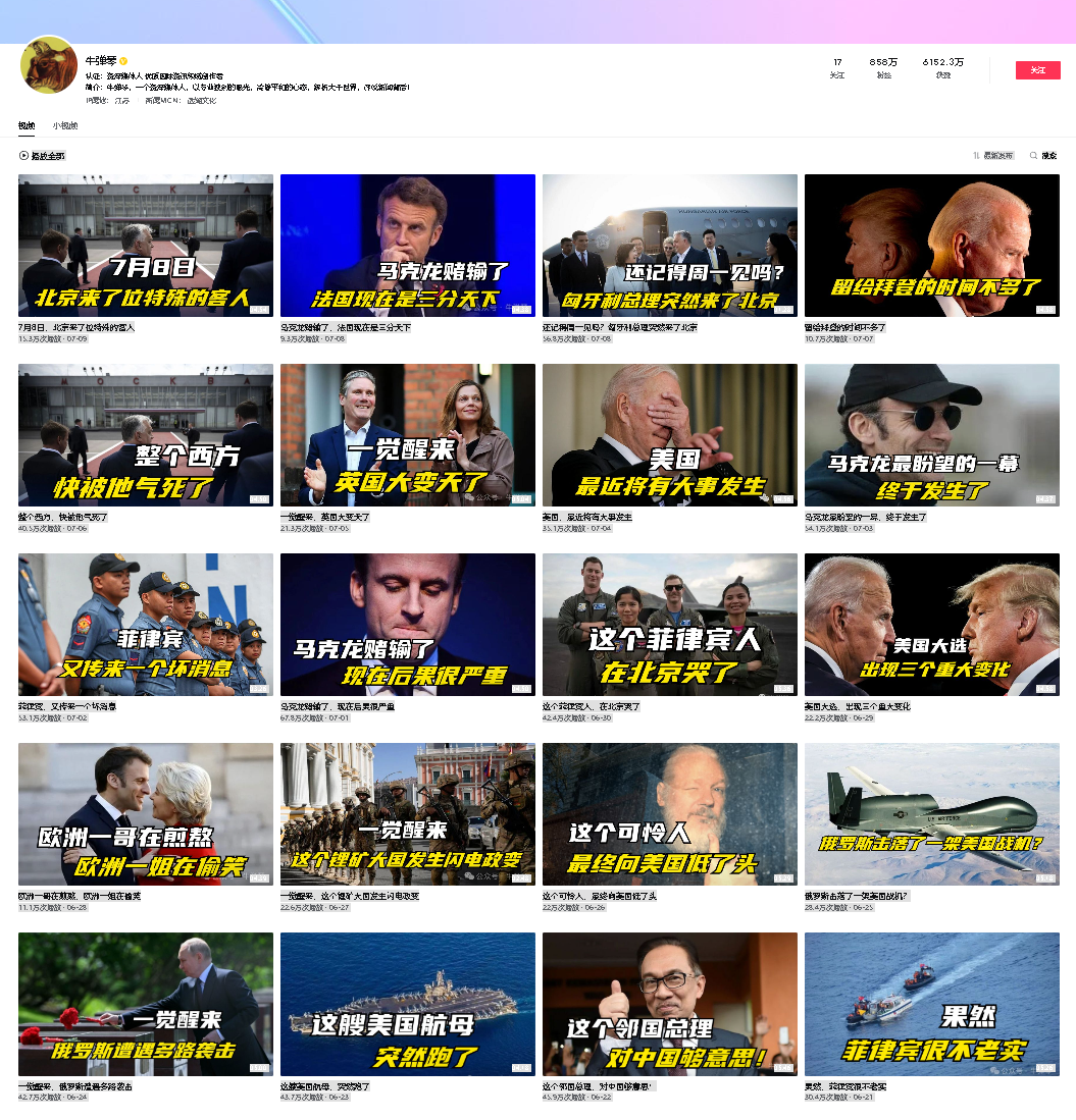 牛弹琴的博文和视频,对世界和人类社会以及国际政治经济,民族矛盾,军事冲突,错综复杂的利益关系展现出来,让人们对事物发生发展的规律性认识,有一个思维的空间和研究,可谓是仁者见仁智者见智。