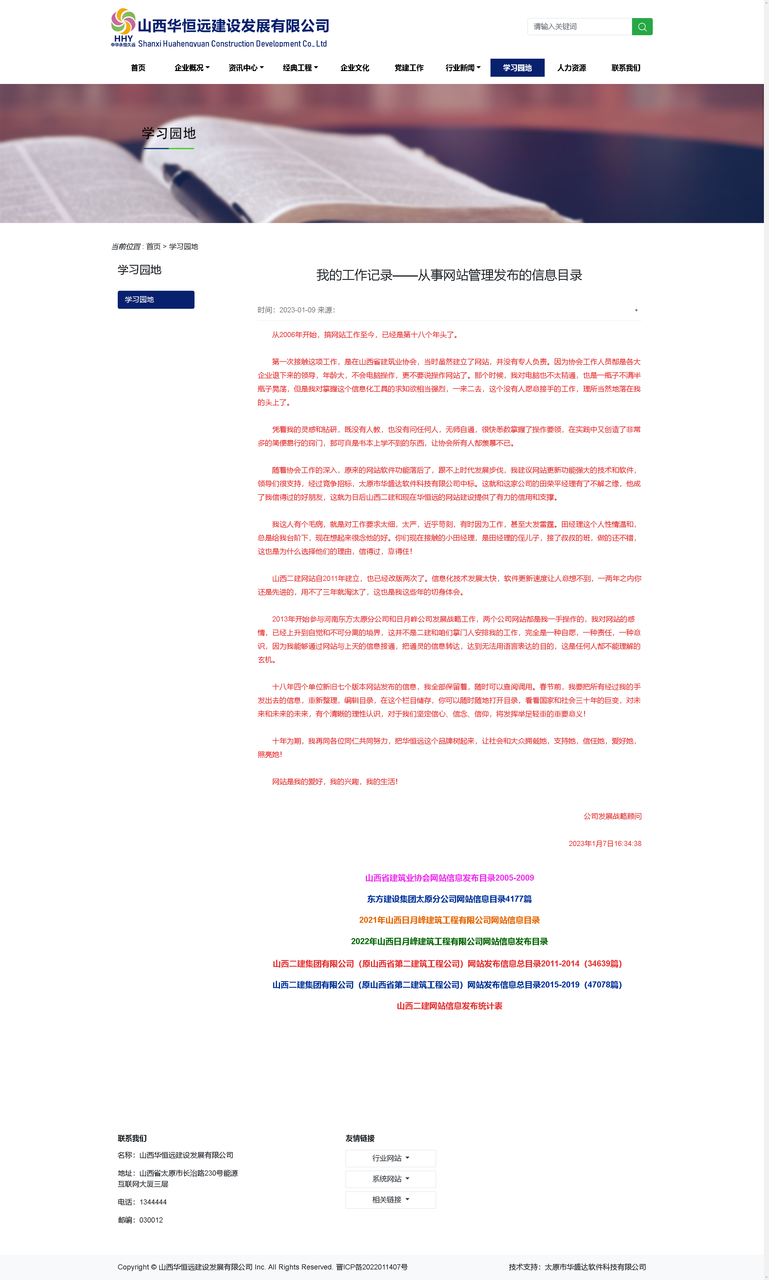 第一次接触这项工作,是在山西省建筑业协会,当时虽然建立了网站,并没有专人负责。因为协会工作人员都是各大企业退下来的领导,年龄大,不会电脑操作,更不要说操作网站了。那个时候,我对电脑也不太精通,也是一瓶子不满半瓶子晃荡,但是我对掌握这个信息化工具的求知欲相当强烈,一来二去,这个没有人愿意接手的工作,理所当然地落在我的头上了。
