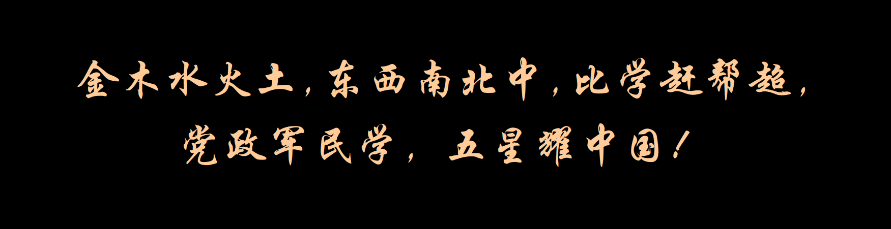 金木水火土,东西南北中,比学赶帮超,党政军民学,五星耀中国!