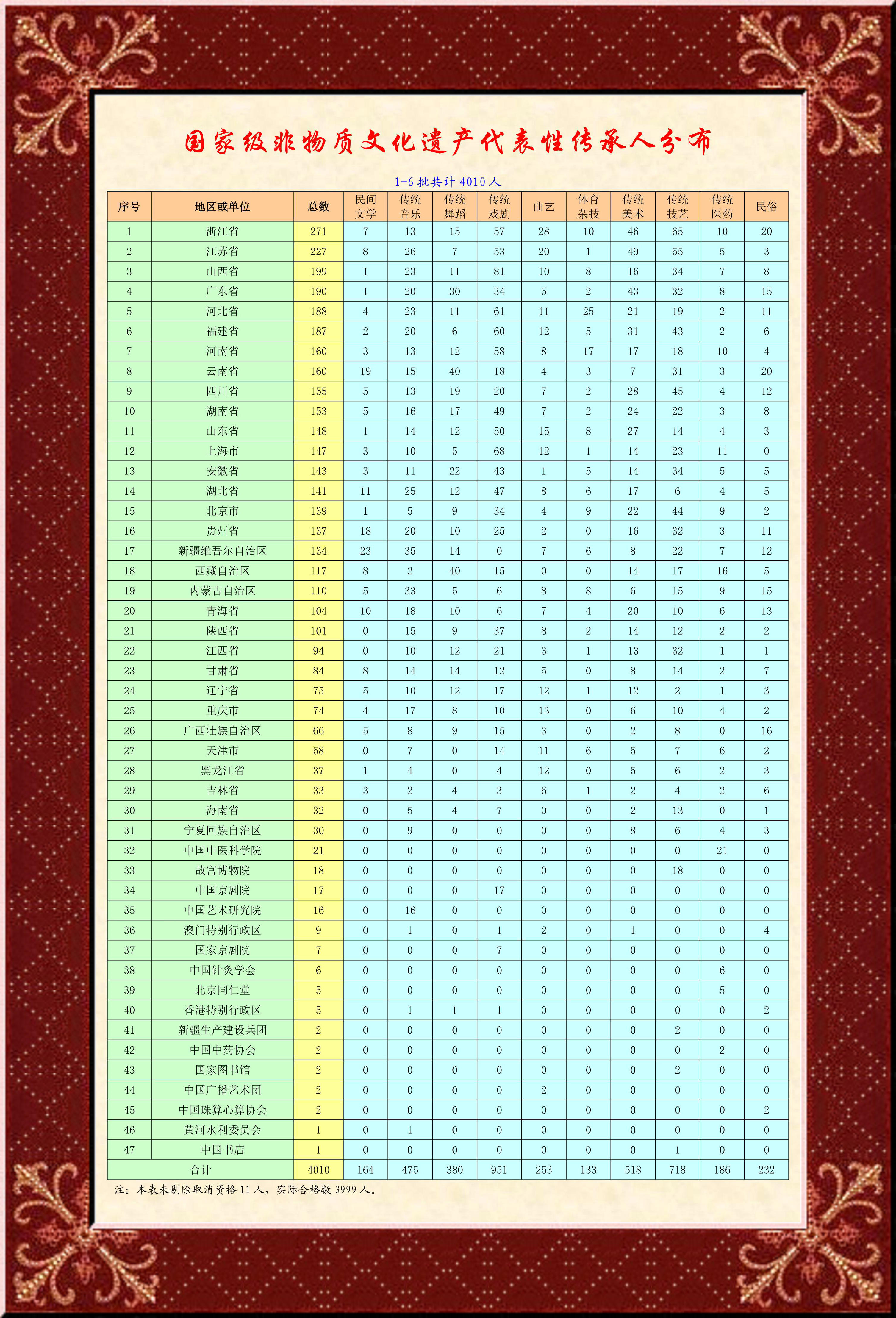 2007年第一批226个/人、2008年第二批551个/人、2009年第三批711个/人、2012年第四批498个/人、2018年第五批1082个/人,2025年第六批942个/人,共计4010人