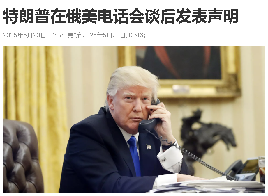 特朗普17日在社交媒体上宣布,他将于当地时间5月19日与普京通话,讨论停止俄乌冲突以及贸易相关问题。特朗普还表示,他随后将与乌克兰总统泽连斯基通话,之后与泽连斯基一起和北约各成员国展开交流。
