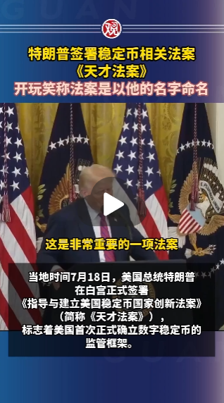当地时间7月18日,美国总统特朗普在白宫正式签署《指导与建立美国稳定币国家创新法案》(简称《天才法案》),标志着美国首次正式确立数字稳定币的监管框架。