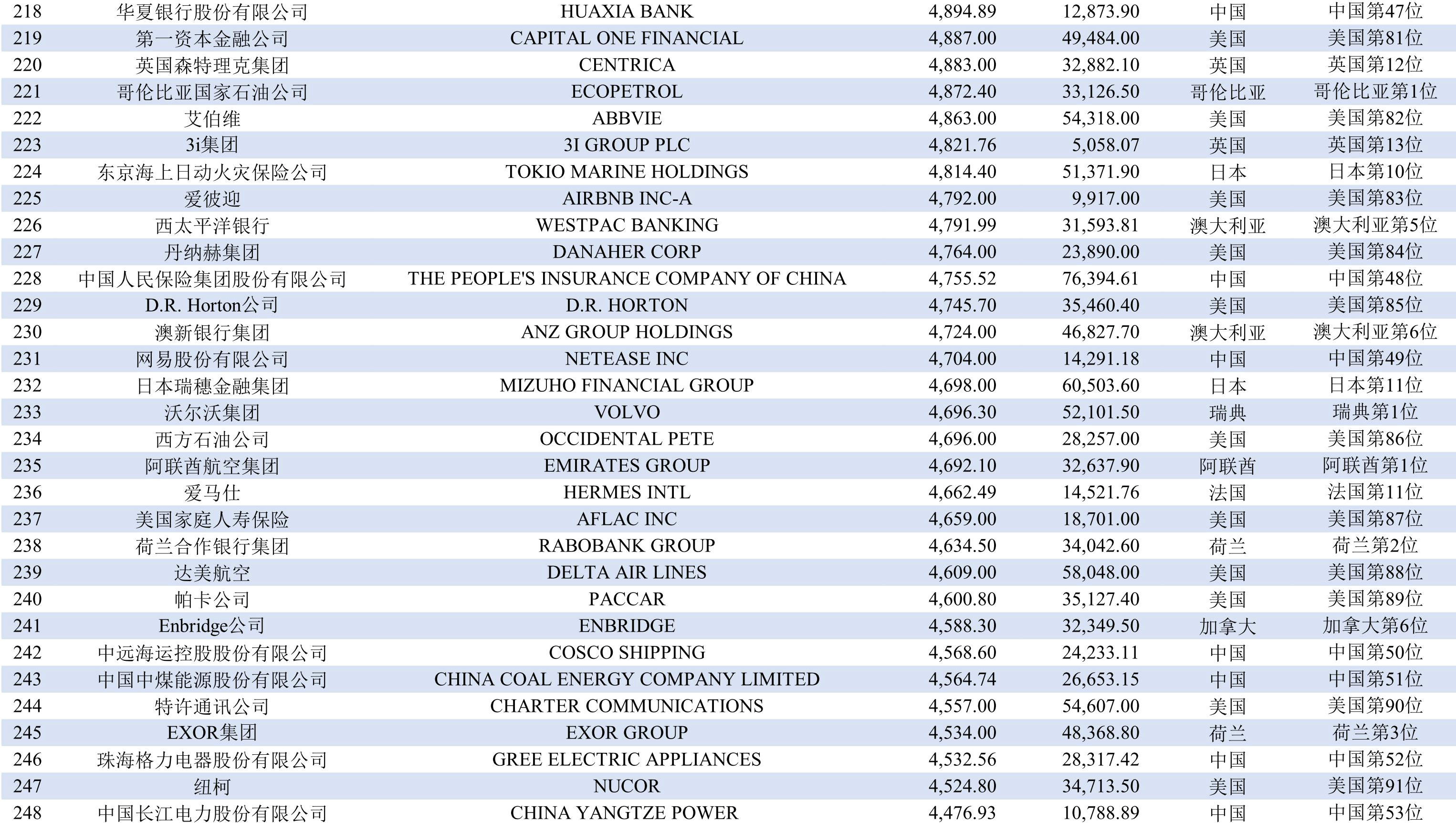 华顿版2024年世界500强企业排行榜中,所有上榜企业创造的利润总额合计为3.82万亿美元,营业收入超32万亿美元,上榜门槛(最低利润额)为21.67亿美元。