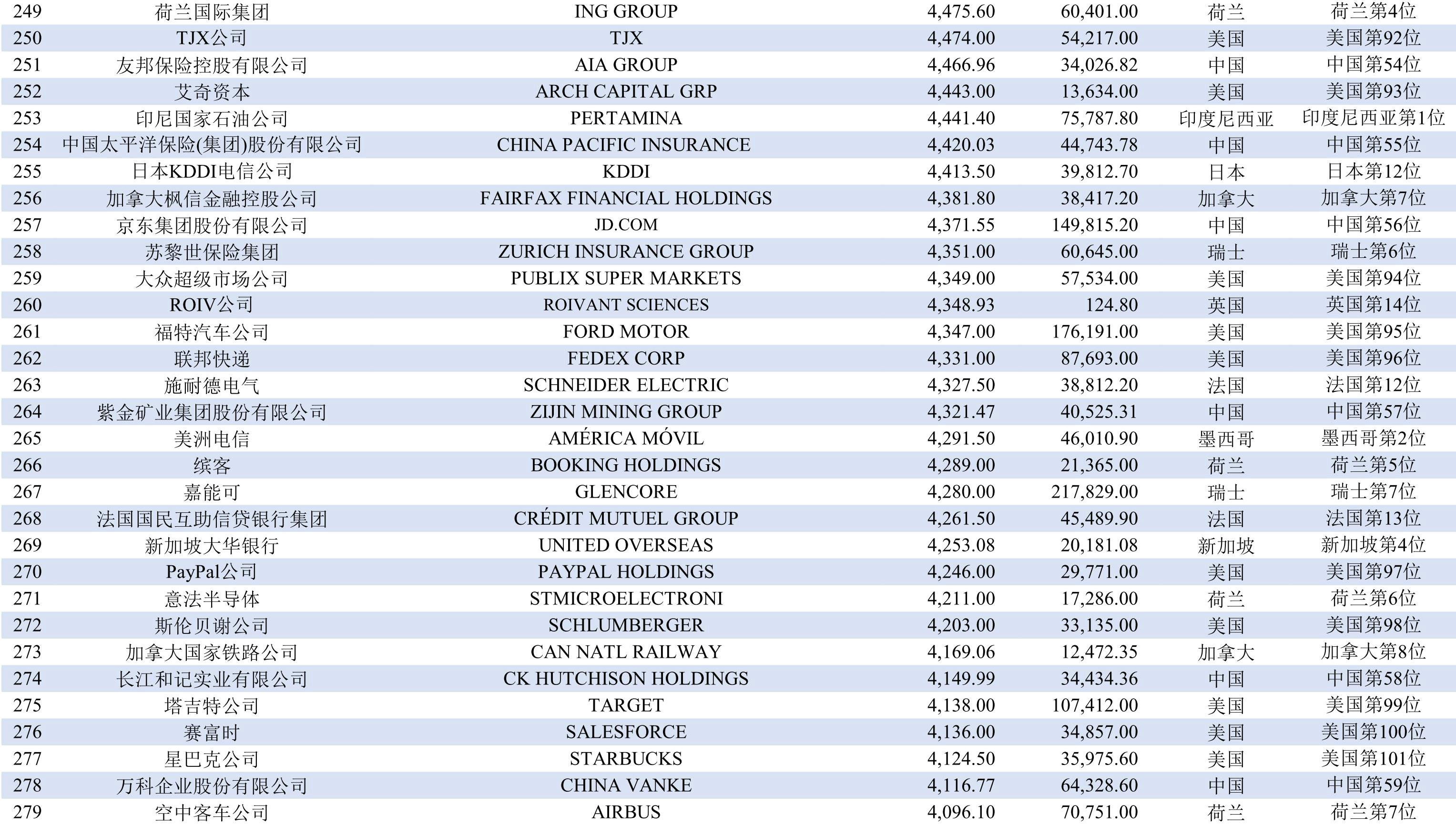 排在第九位的国家有三个,分别是澳大利亚、荷兰和印度,均有8家上榜企业;排在第十二位至第二十一位的国家分别是巴西、俄罗斯、韩国、西班牙、新加坡、意大利、爱尔兰、墨西哥、阿联酋、丹麦,均各有2-6家企业上榜。