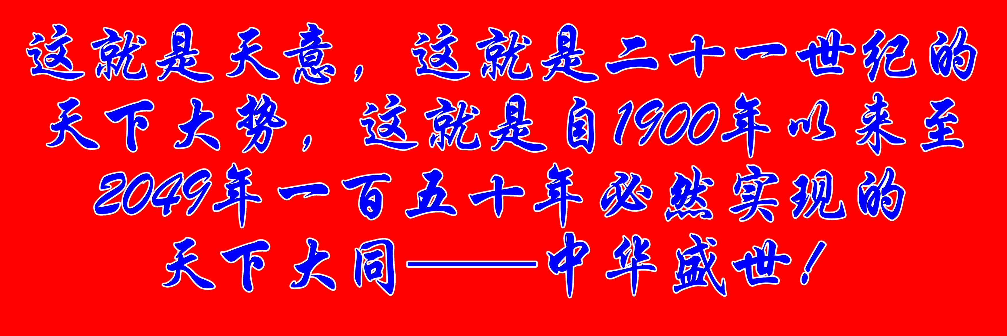 这就是天意,这就是二十一世纪的天下大势,这就是自1900年以来至2049年一百五十年必然实现的天下大同 ——中华盛世!