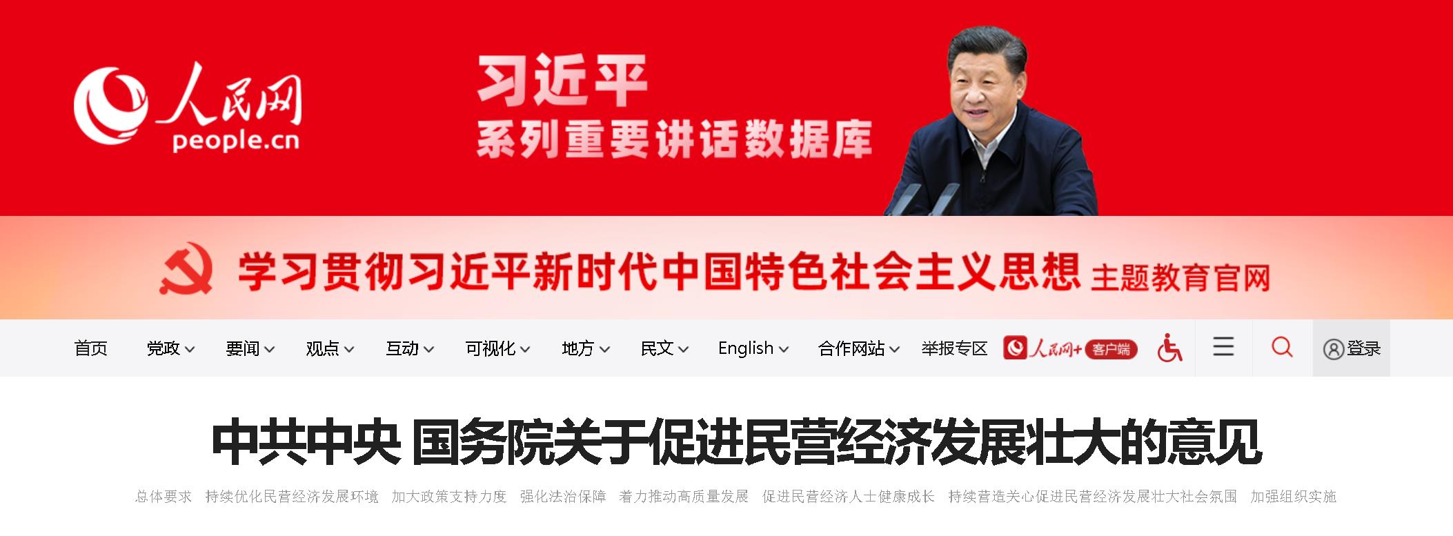 今天,《中共中央国务院关于促进民营经济发展壮大的意见》发布。
