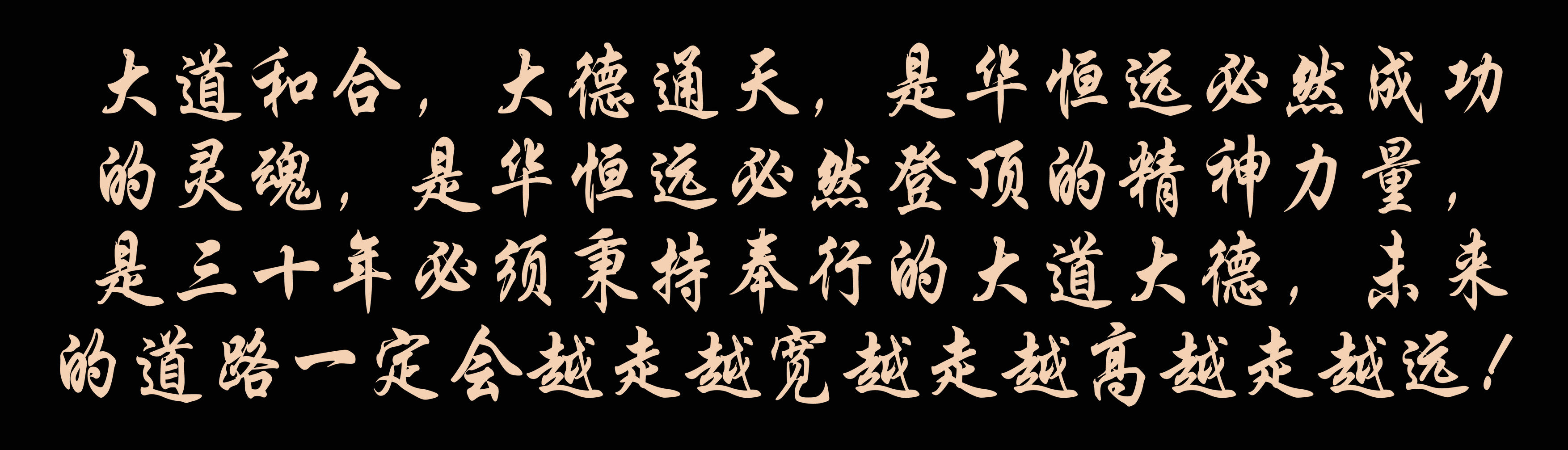 大道和合,大德通天,是k1体育必然成功的灵魂,是k1体育必然登顶的精神力量,是三十年必须秉持奉行的大道大德,未来的道路一定会越走越宽越走越高越走越远!