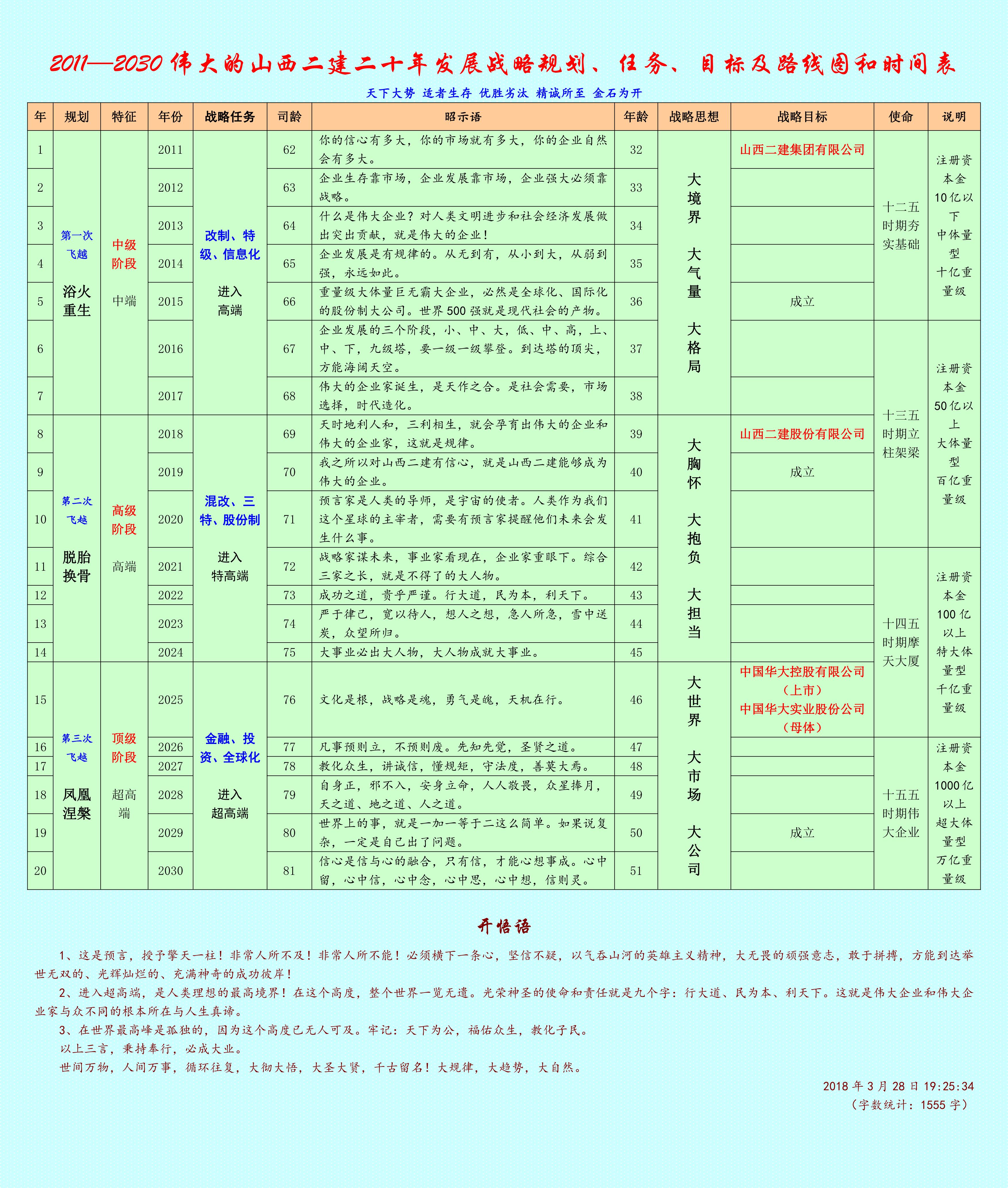 既然是受了前掌门人的指点前来,那也要给些面子,指点一二,看看是否合我之意,能否担当成就未来的大业!这就是为他量身定做的发展战略,从2018年到2030年十二年的施工图与时间表。告知2035年是他人生最大的机遇,需要从现在开始感悟如何实现!