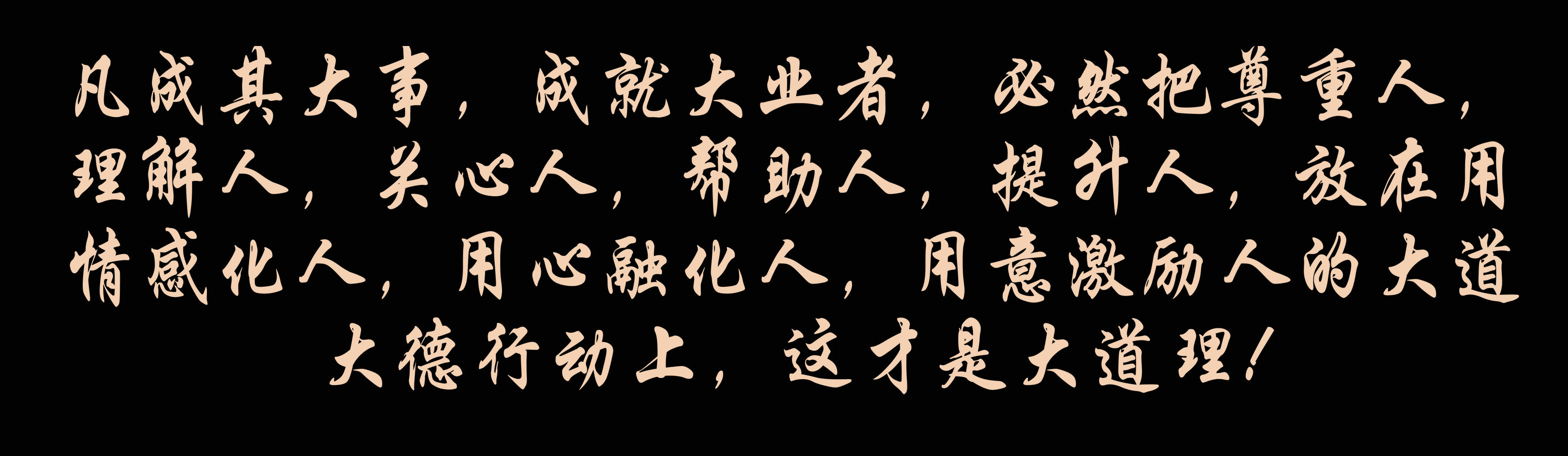 思维模式决定成败,境界决定格局空间!凡成其大事,成就大业者,必然把尊重人,理解人,关心人,帮助人,提升人,放在用情感化人,用心融化人,用意激励人的大道大德行动上,这才是大道理!