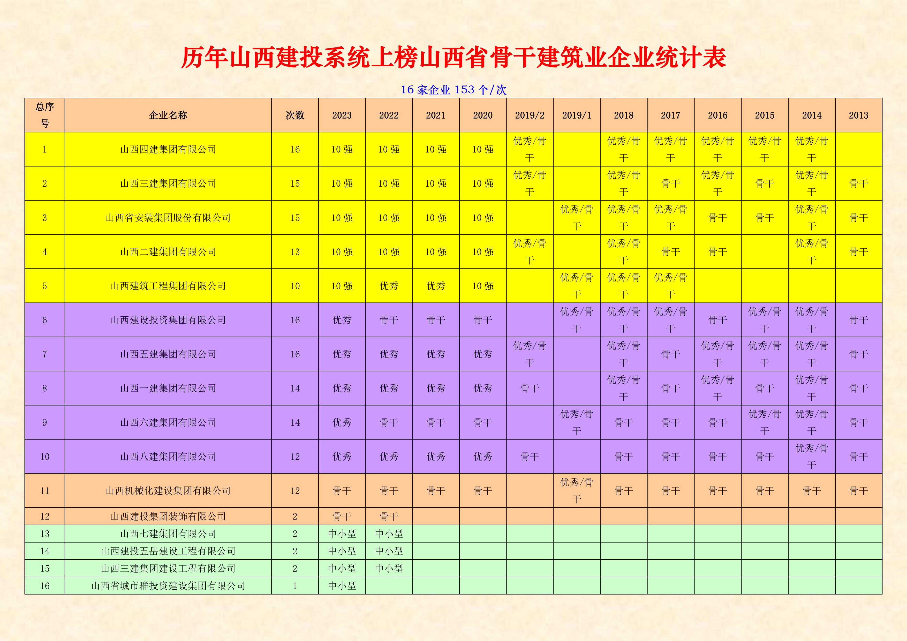 今天,省住建厅公布了2023年度山西省骨干建筑业企业名单。这是从2013年开始连续十一年第12次对全省建筑业企业的又一次检验和认定!