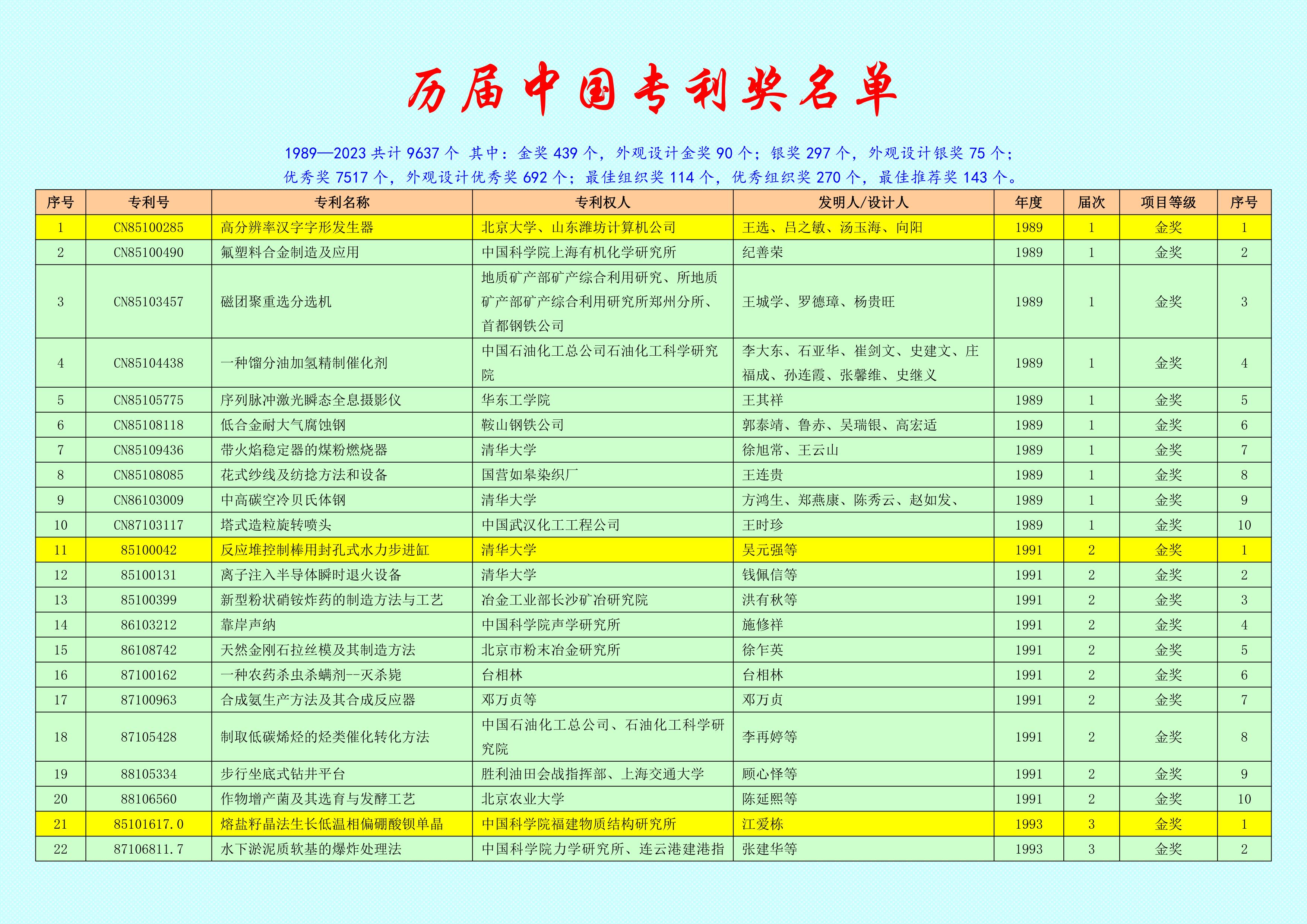 这是全国第一个以一张表汇总的第一份中国专利奖历经34年的成就!可以说,这是一件善莫大焉的好事,而这件事只有我来做!