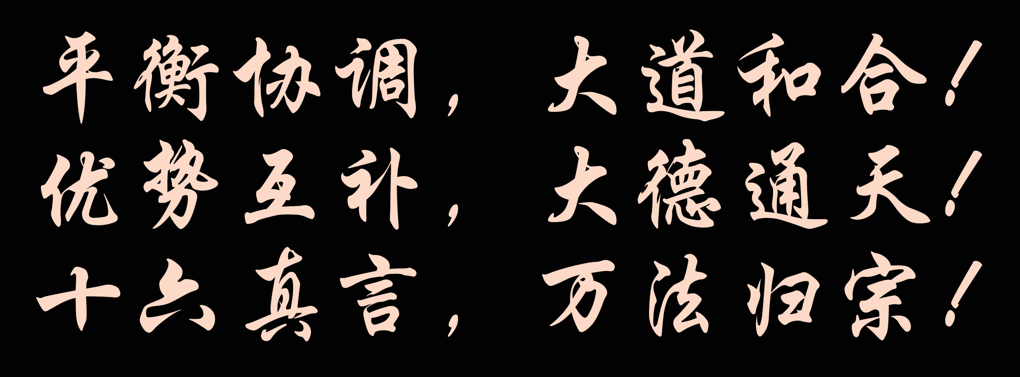 平衡协调,大道和合!优势互补,大德通天!十六真言,万法归宗!