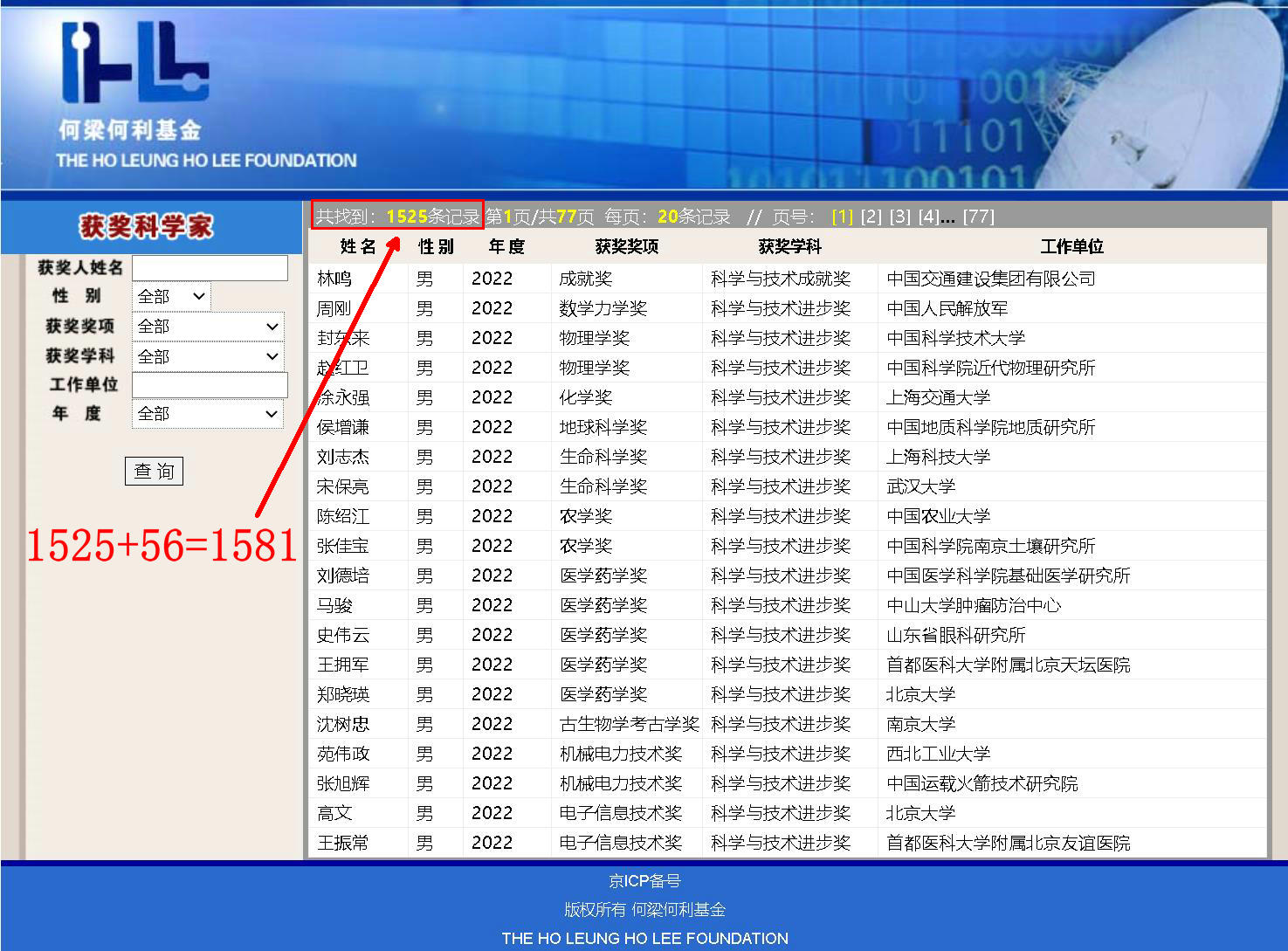 今天,编辑《何梁何利基金科学与技术奖获奖科学家名单》,1581名。
