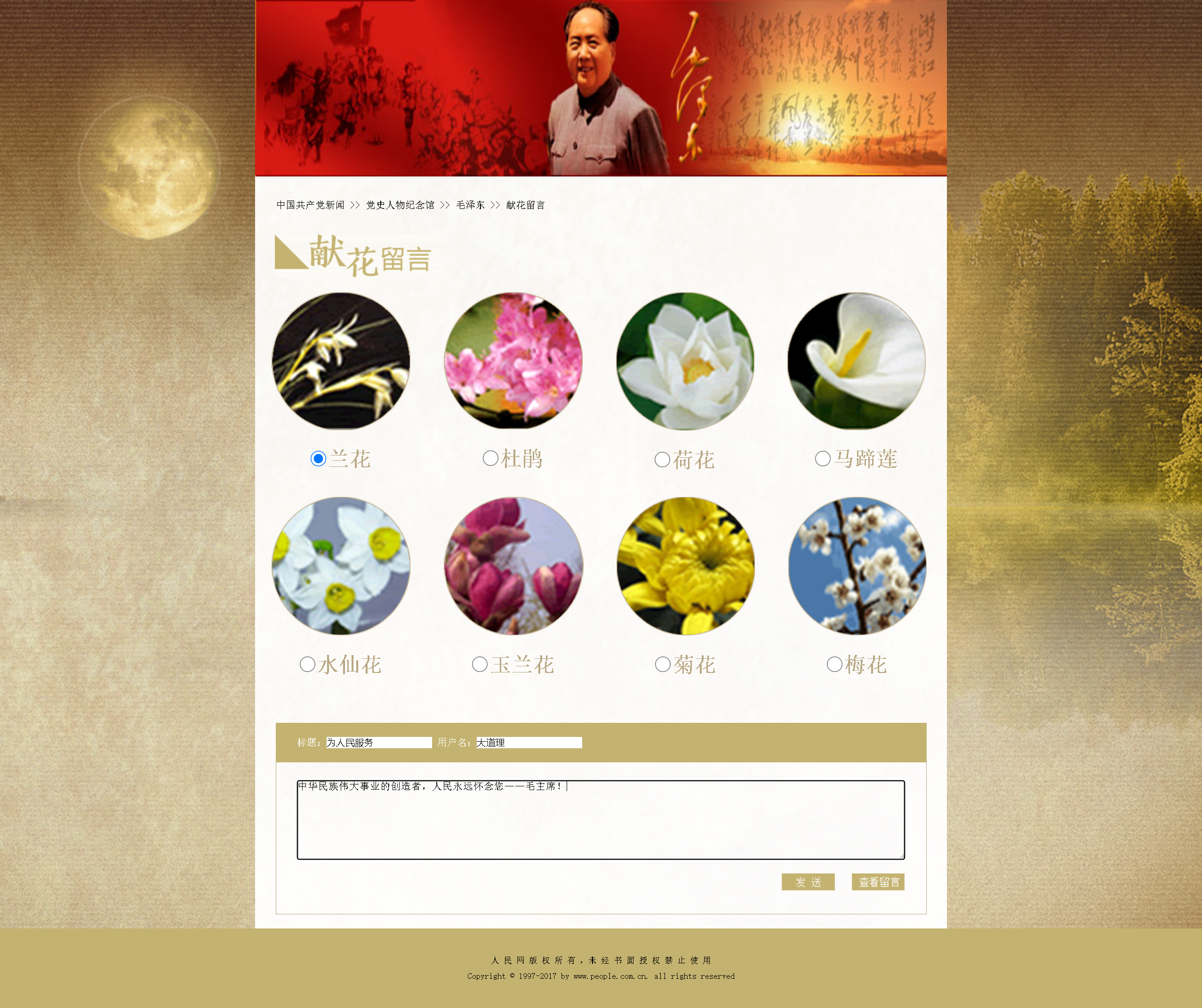 每年的9月9日和12月26日,我第一件要做的事情,是给毛主席老人家敬献一朵鲜花,以表虔诚和敬畏之心!