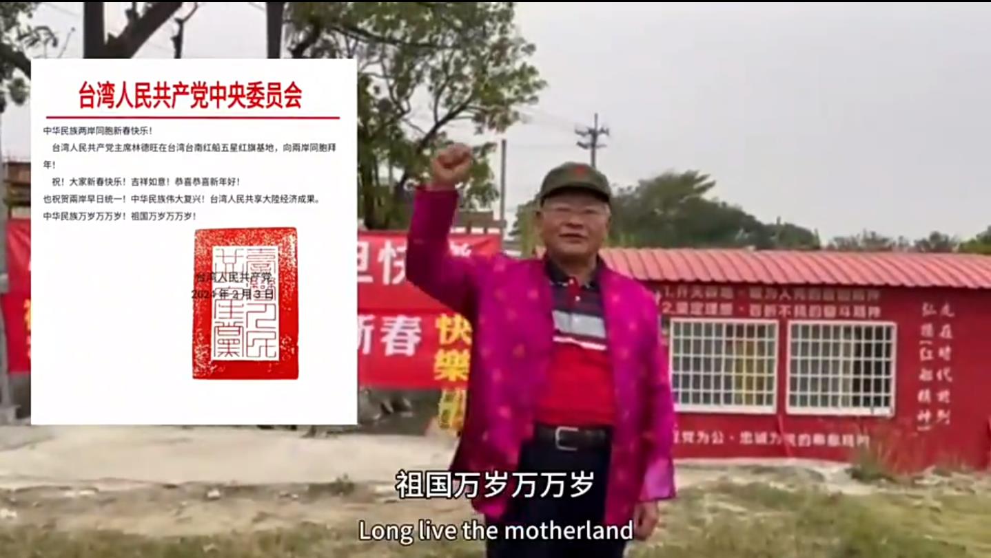 台湾人民共产党主席林德旺在台湾台南红船五星红旗基地,向两岸同胞拜年!