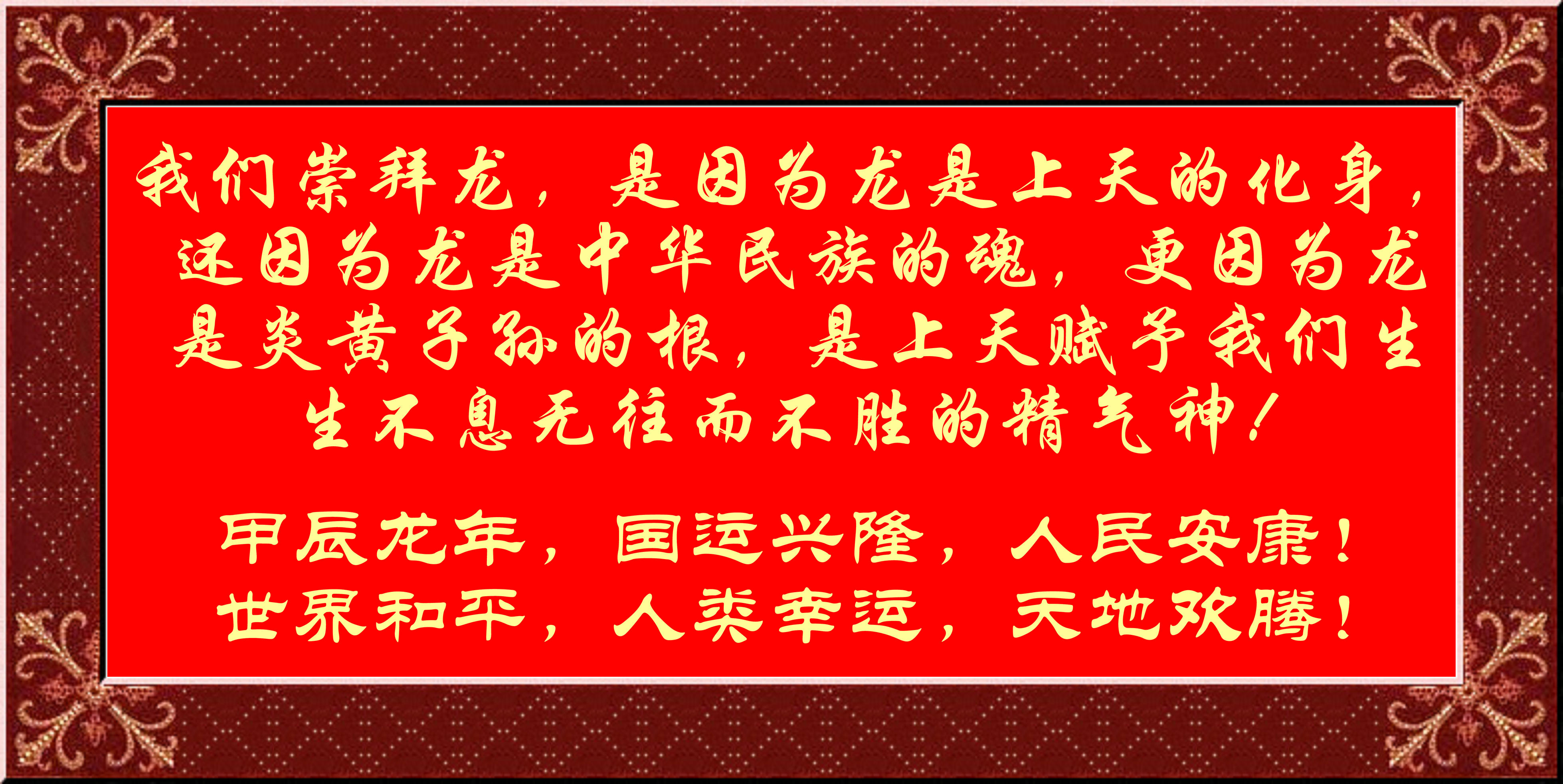 甲辰龙年,国运兴隆,人民安康!世界和平,人类幸福,天地欢腾!