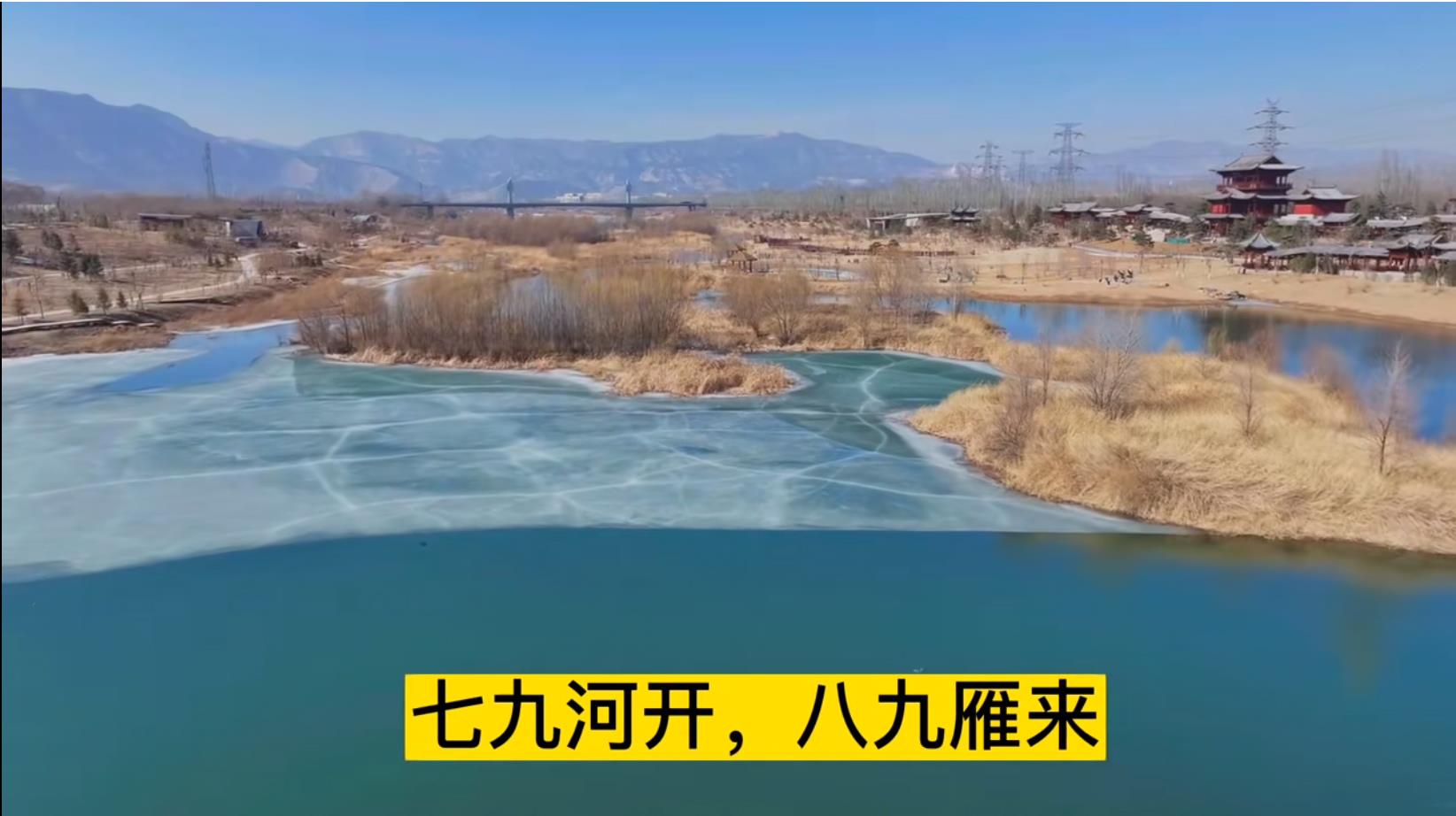 初五问儿子,汾河开了没有?说没有呢!冰还老厚了!我说,不超一周,肯定开河,这不就是开了?!