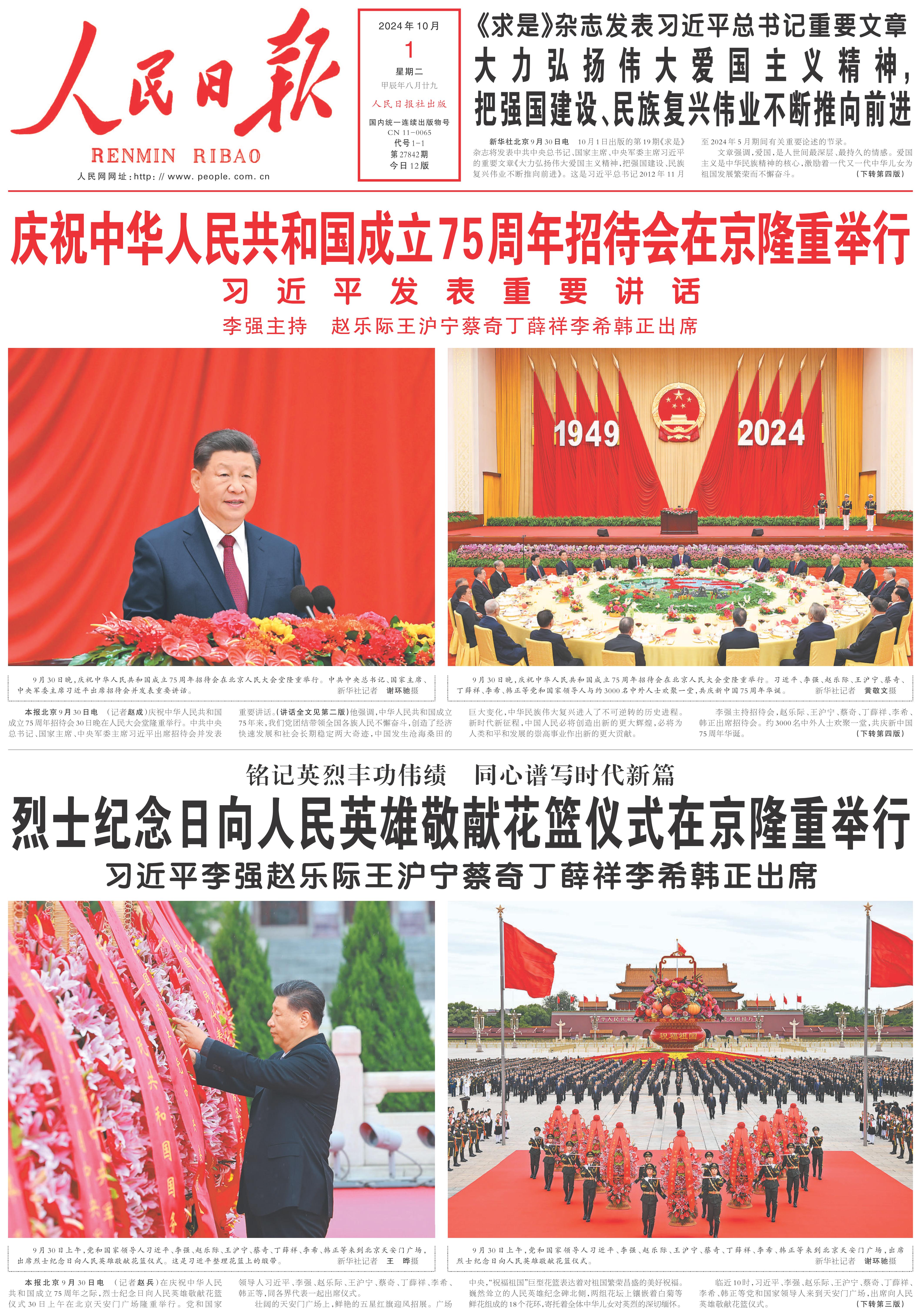 春华秋实,岁物丰成。今天,我们迎来了中华人民共和国成立75周年。走过波澜壮阔的历程,走向无比光明的前程,亿万人民奋进在实现伟大梦想的康庄大道上。