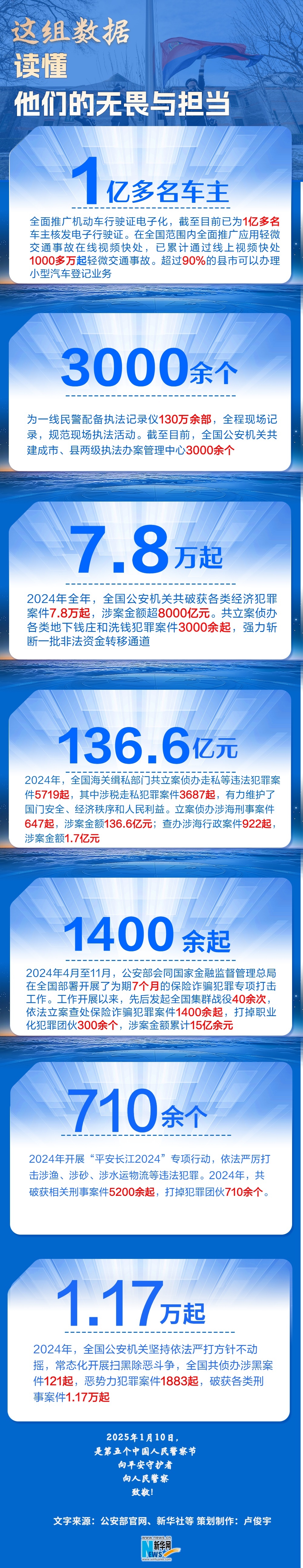 新华社北京1月10日电(记者 熊丰)为深入学习贯彻习近平总书记关于新时代公安工作的重要论述,大力选树宣传在公安基层一线涌现出的先进典型,推动全社会形成见贤思齐、崇尚英雄、争做先锋的良好氛围,广泛凝聚建设平安中国的力量,在第5个中国人民警察节到来之际,中央宣传部、公安部向全社会发布了2024“最美基层民警”先进事迹。