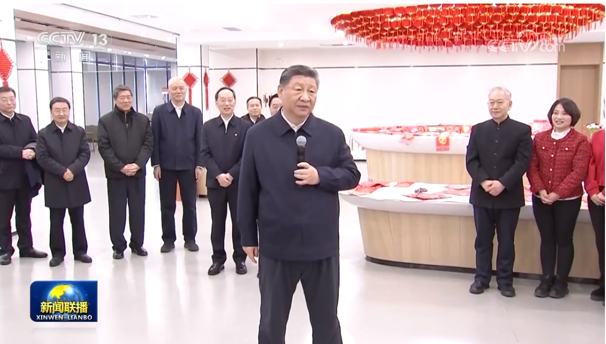 1月22日至24日,中共中央总书记、国家主席、中央军委主席习近平冒着严寒来到辽宁,看望慰问基层干部群众。这是23日上午,习近平在沈阳大东区长安街道长安小区社区党群服务中心考察时,向全国各族人民和香港同胞、澳门同胞、台湾同胞、海外侨胞致以美好的新春祝福。新华社记者 谢环驰 摄