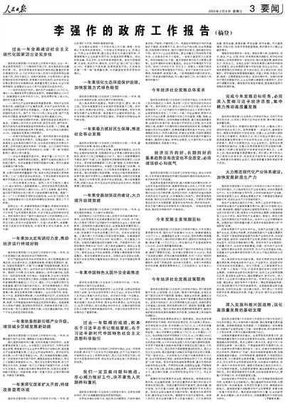 李强作的政府工作报告(摘登)