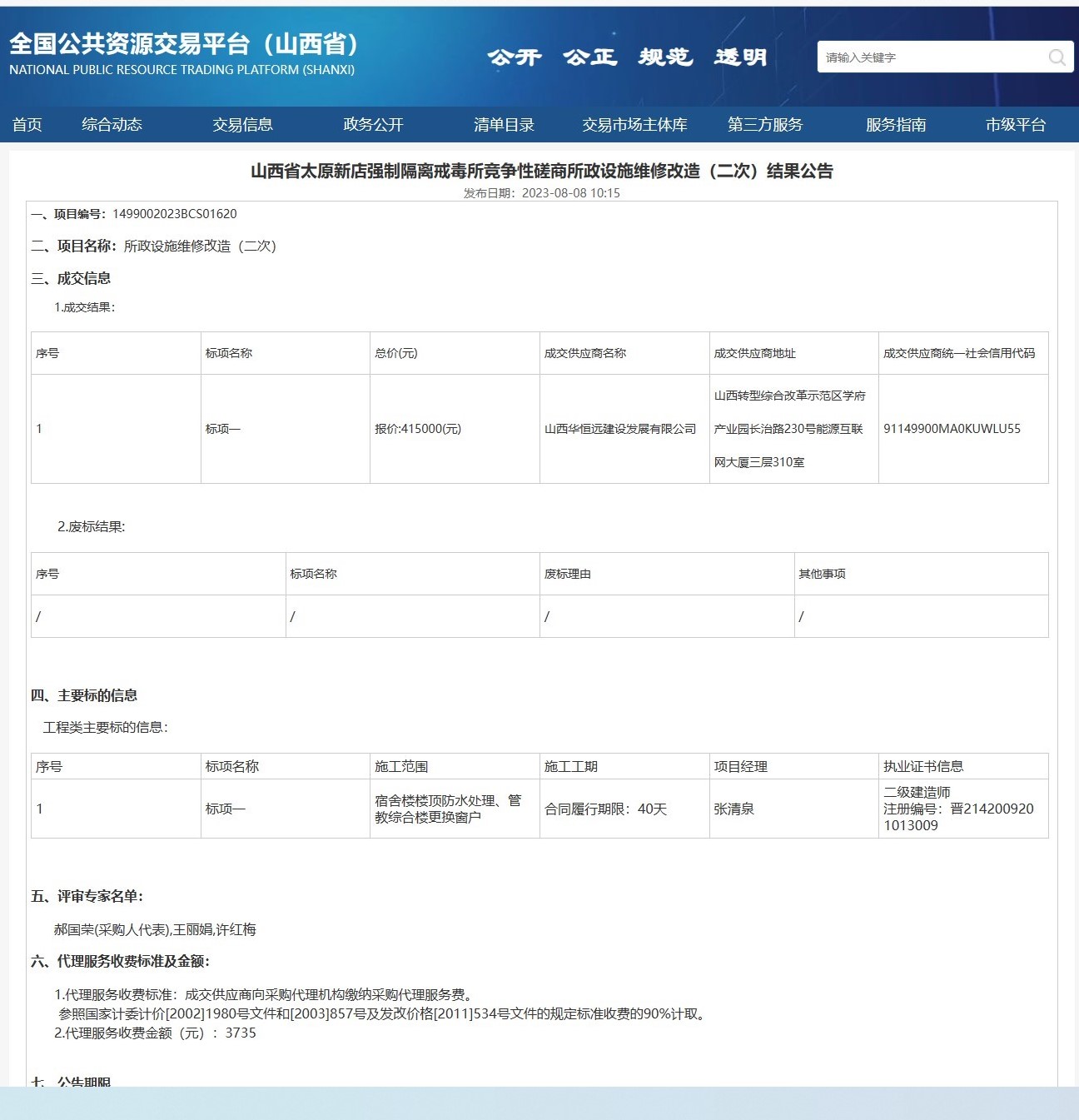 山西省太原新店强制隔离戒毒所竞争性磋商所政设施维修改造(二次)
