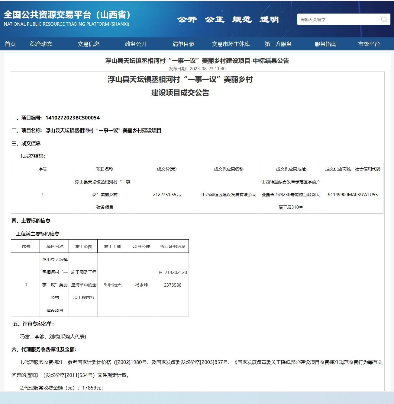 浮山县天坛镇丞相河村“一事一议”美丽乡村建设项目