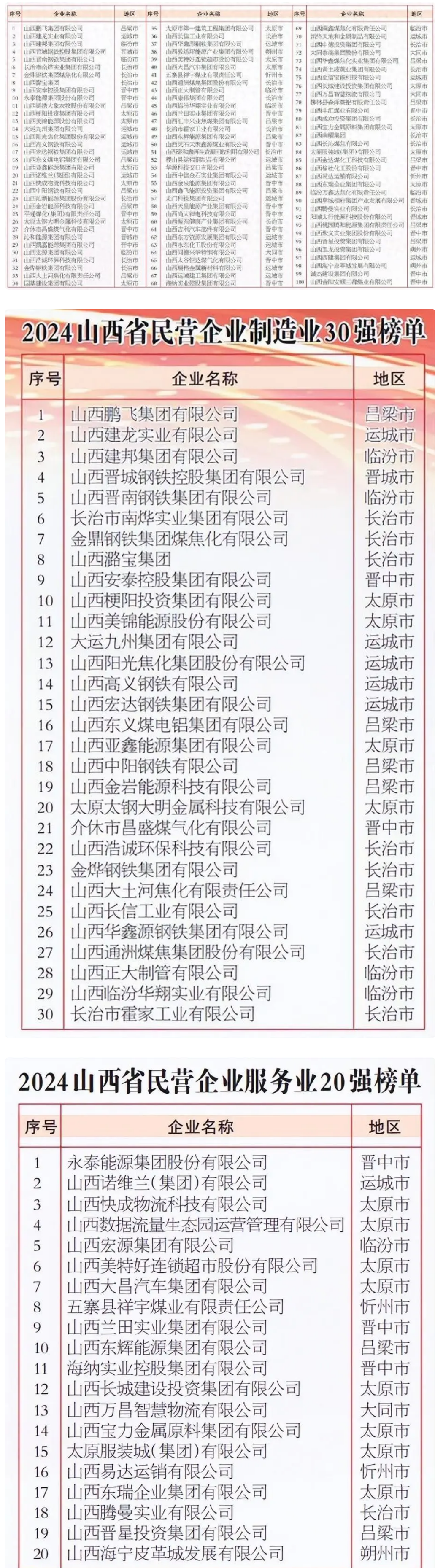 10月12日至13日,“万企兴万村”山西行动现场推进会暨民营企业助力县域经济高质量发展大会在山西省吕梁市石楼县召开,会议发布了2024山西省民营企业100强榜单。