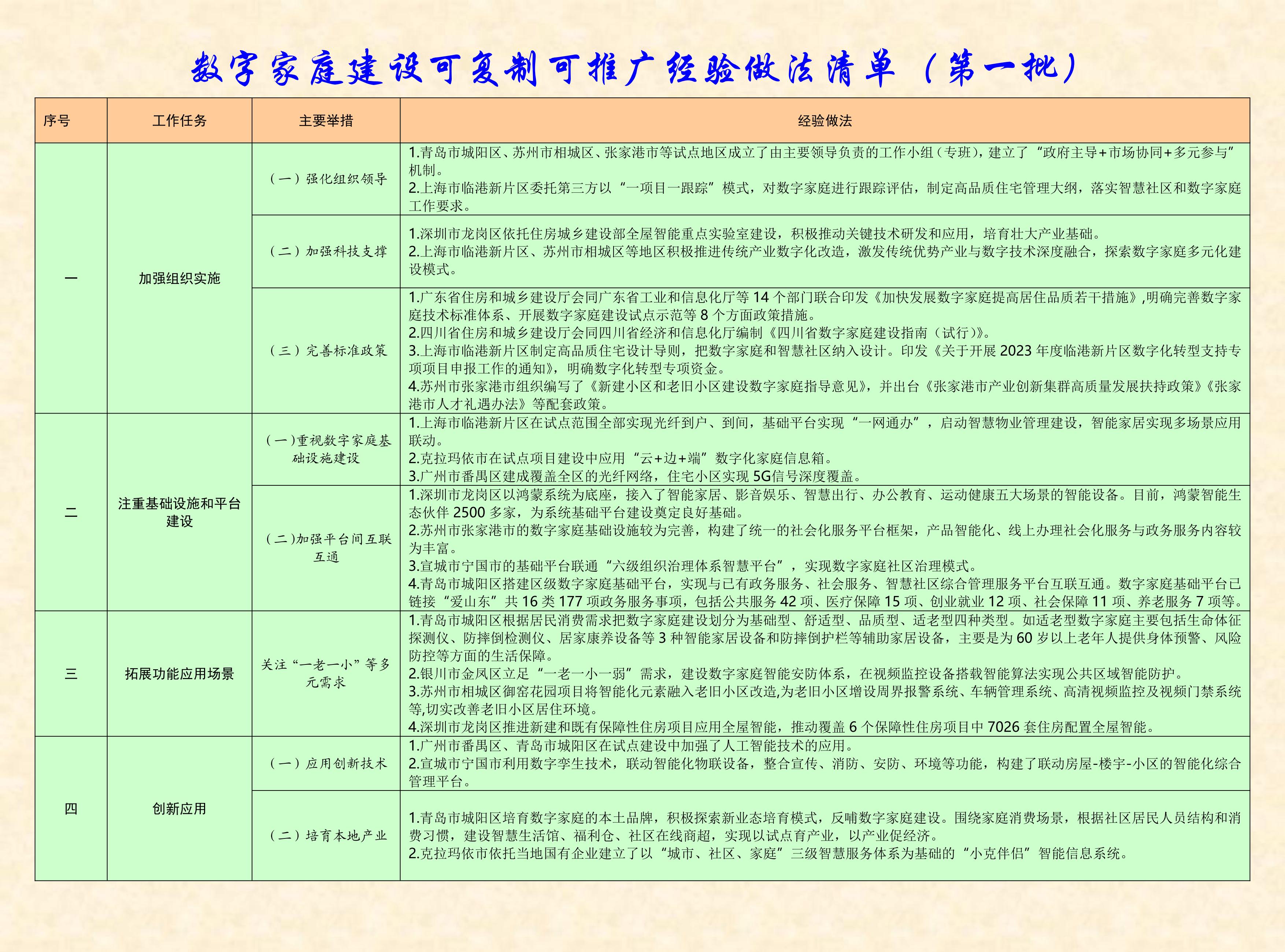 附件:数字家庭建设可复制可推广经验做法清单(第二批)