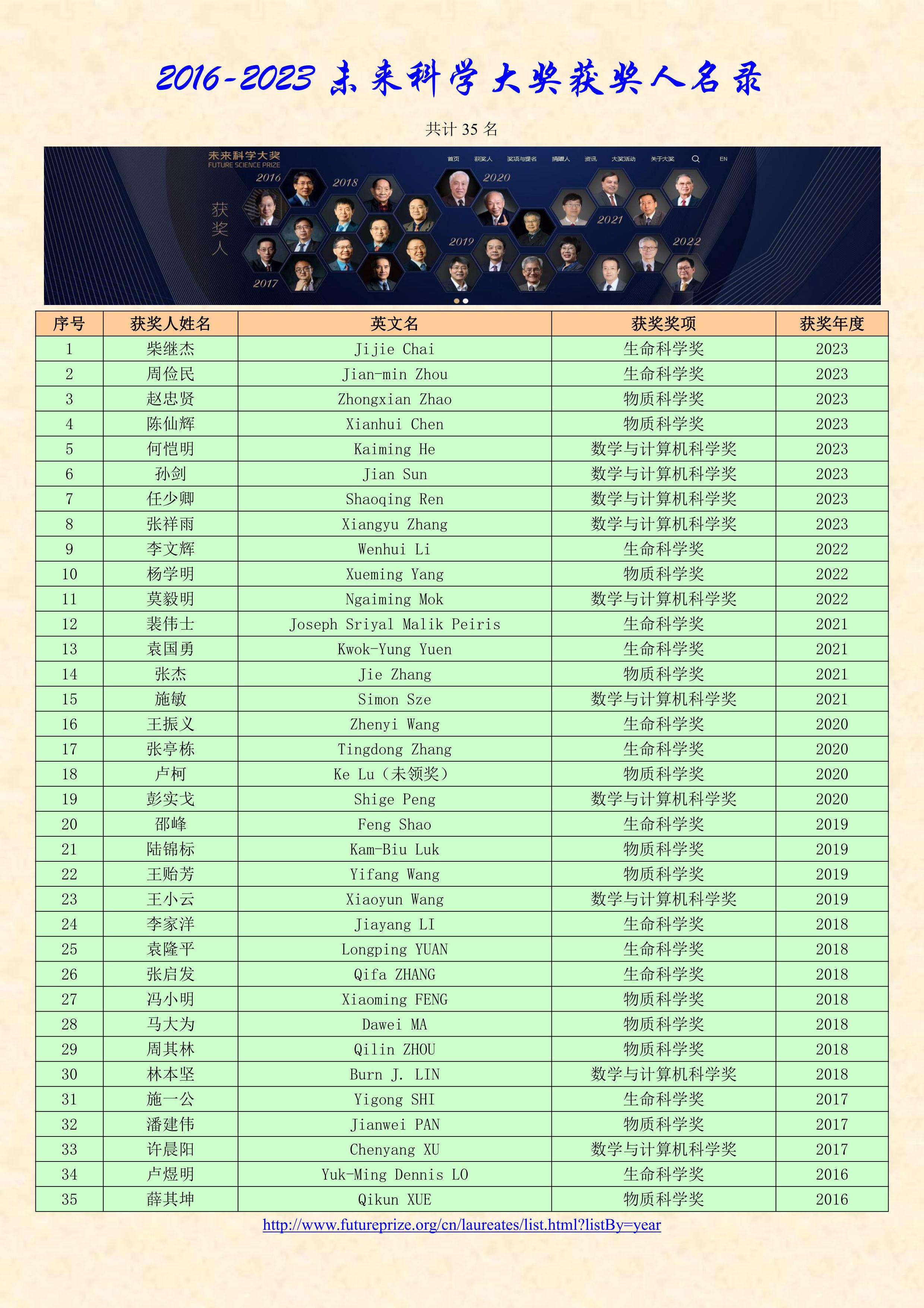 2023未来科学大奖获奖人揭晓。未来科学大奖组委会供图