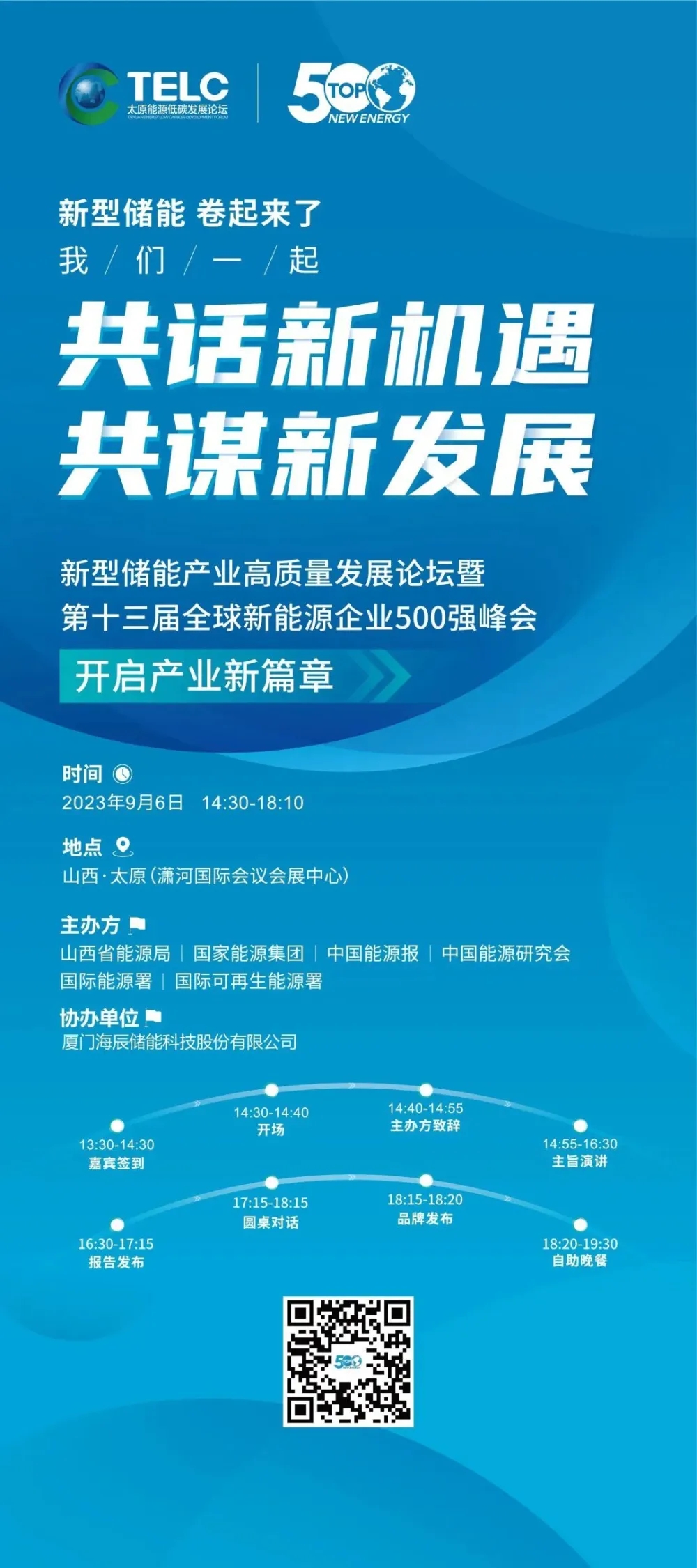 为推动新型储能产业高质量发展,省能源局携手国家能源集团、中国能源报、中国能源研究会,以及国际能源署、国际可再生能源署,联合举办新型储能产业高质量发展论坛暨第十三届全球新能源企业500强峰会。峰会将聚焦新型储能高质量发展主题,汲取业界顶级智慧,为新型储能产业的健康发展提供方向指引和路径选择。